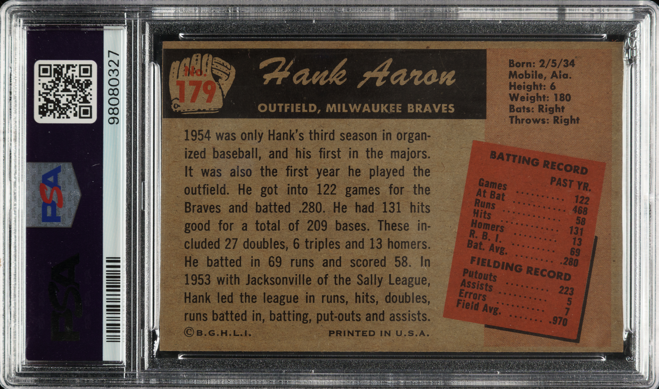 Graded EX-MT+ 6.5 by PSA. Milwaukee Braves Hall of Famer Hank Aaron.