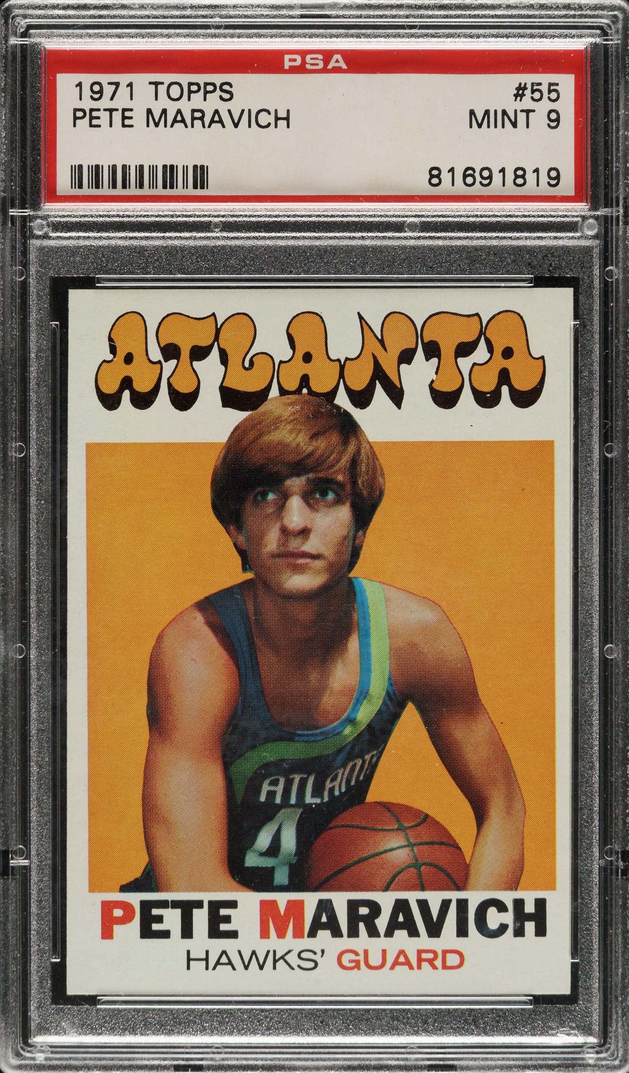 Graded MINT 9 by PSA. Atlanta Hawks basketball Hall of Famer Pete Maravich during his second season.