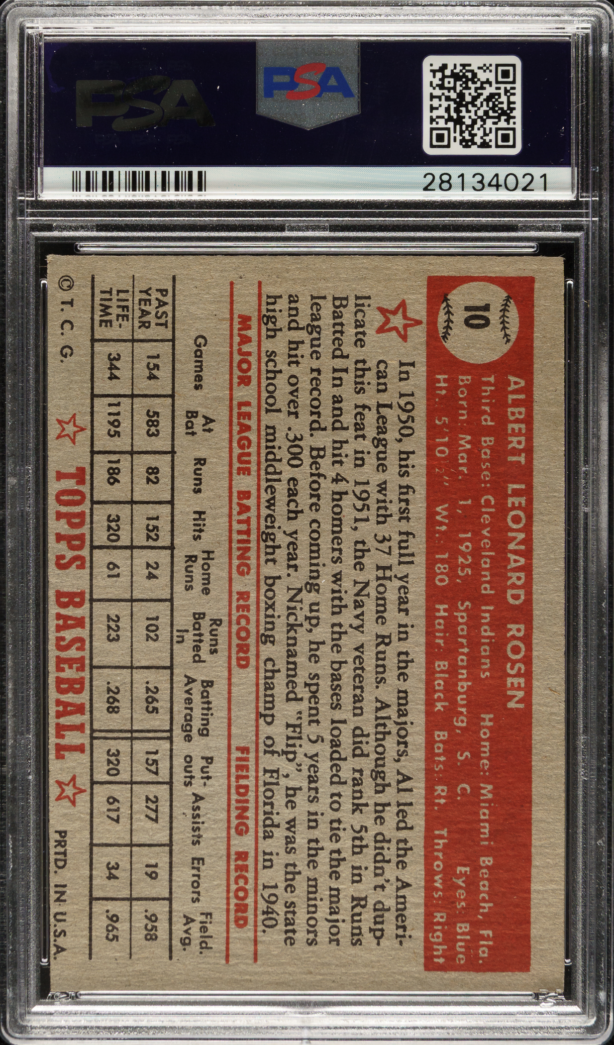 Lot # 1164: 1952 Topps #10 Al Rosen PSA EX-MT 6