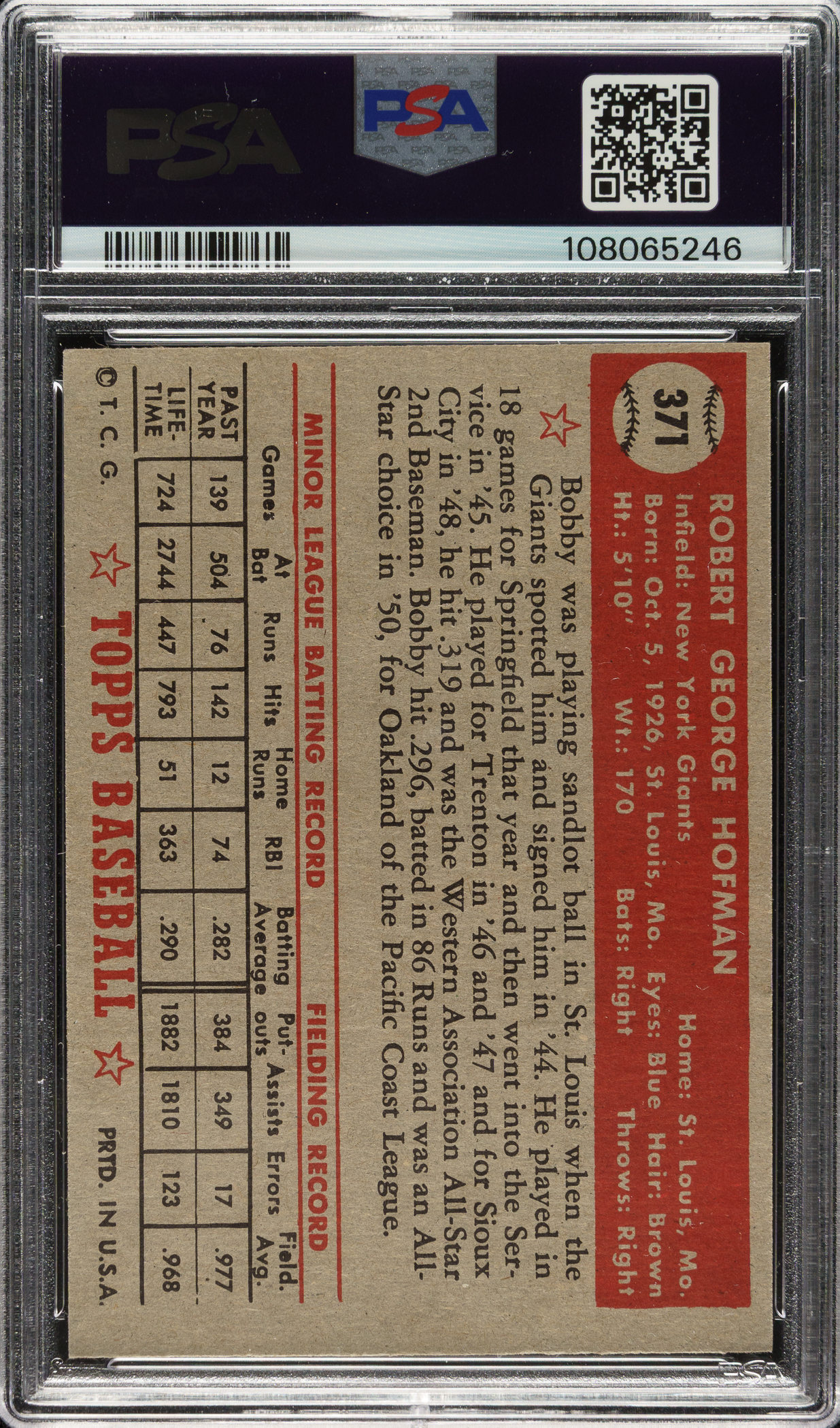 Lot # 1197: 1952 Topps #371 Bob Hofman High Number PSA NM 7