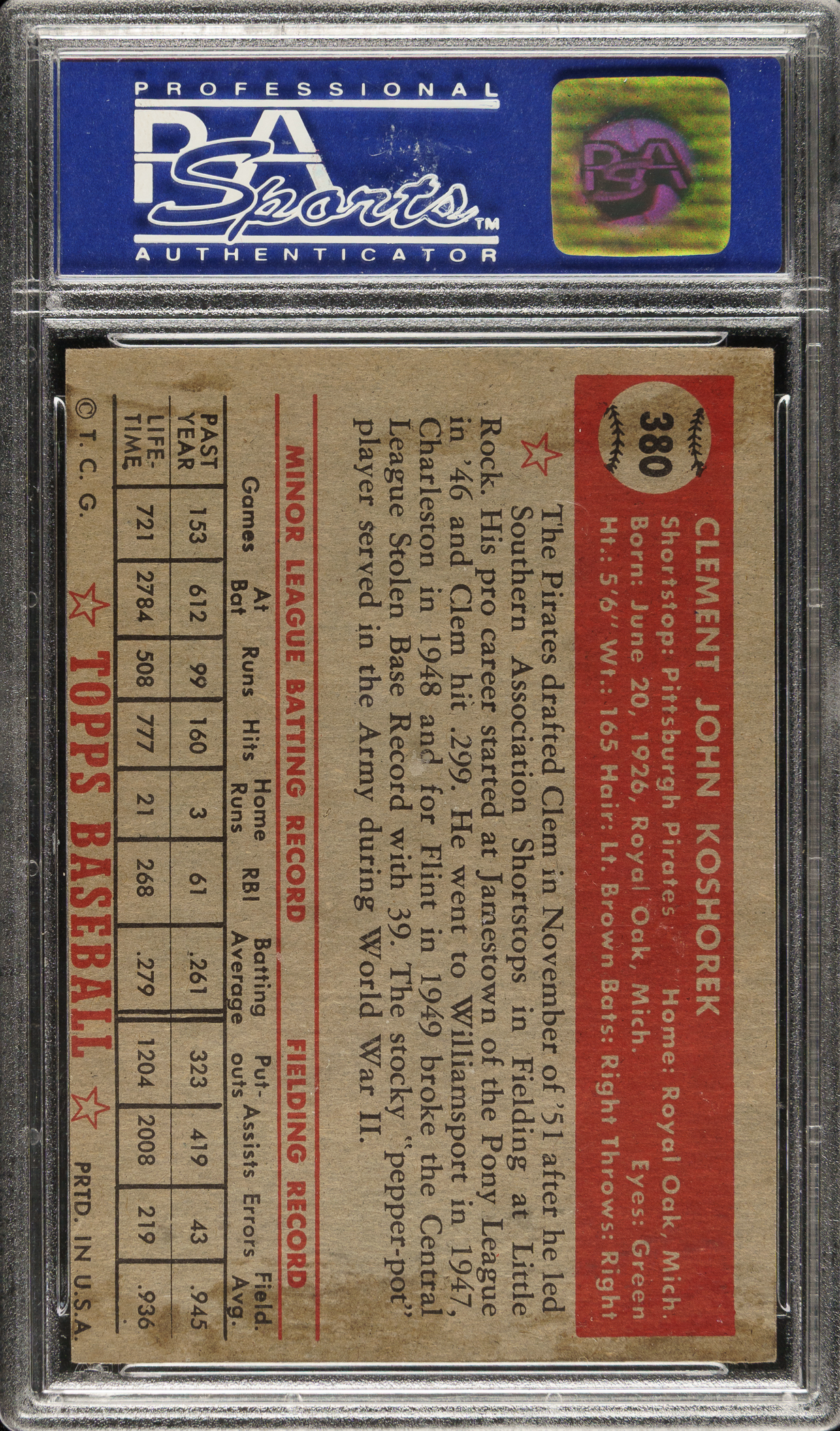 Graded EX-MT 6 by PSA. Pittsburgh Pirates.