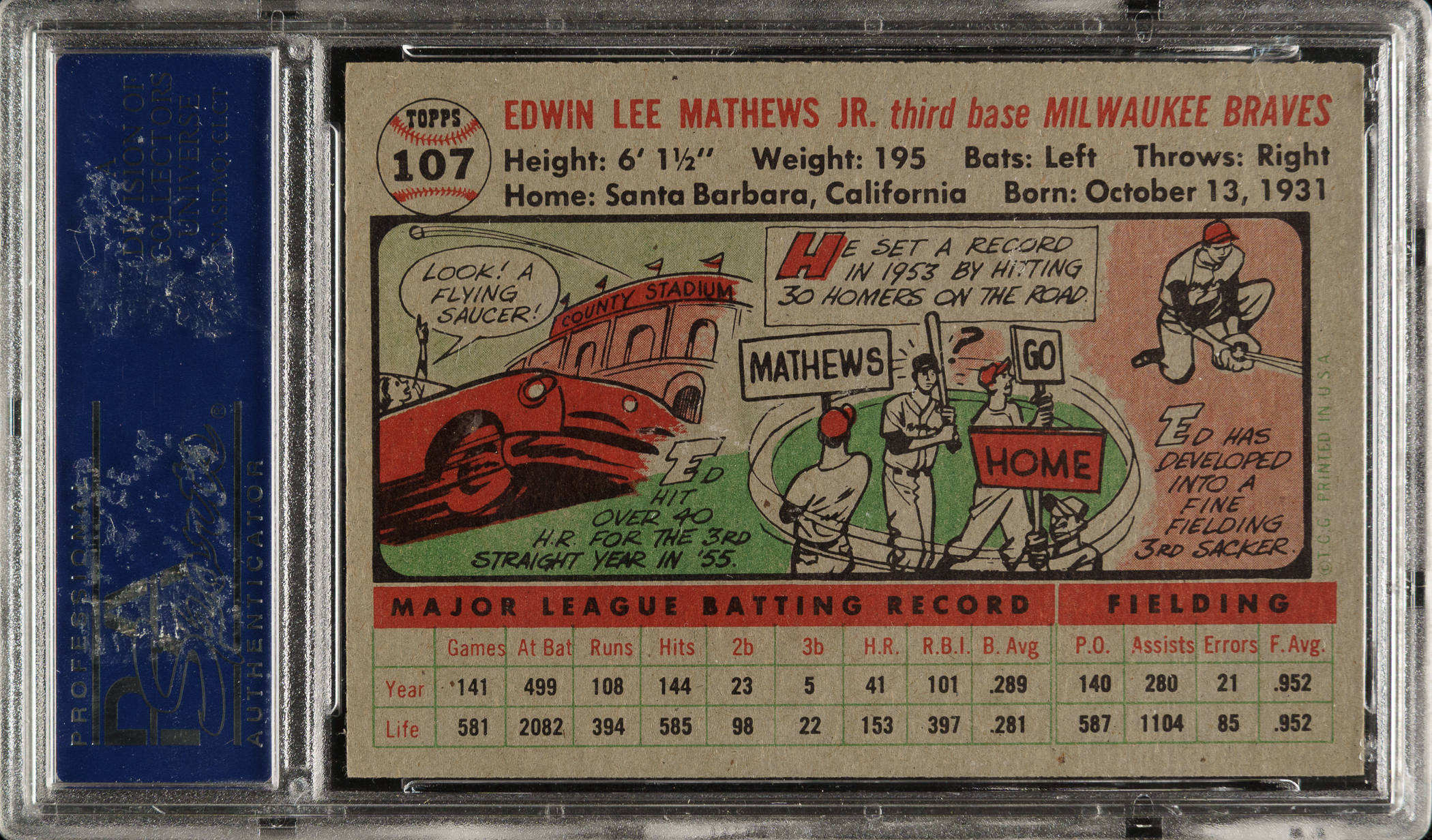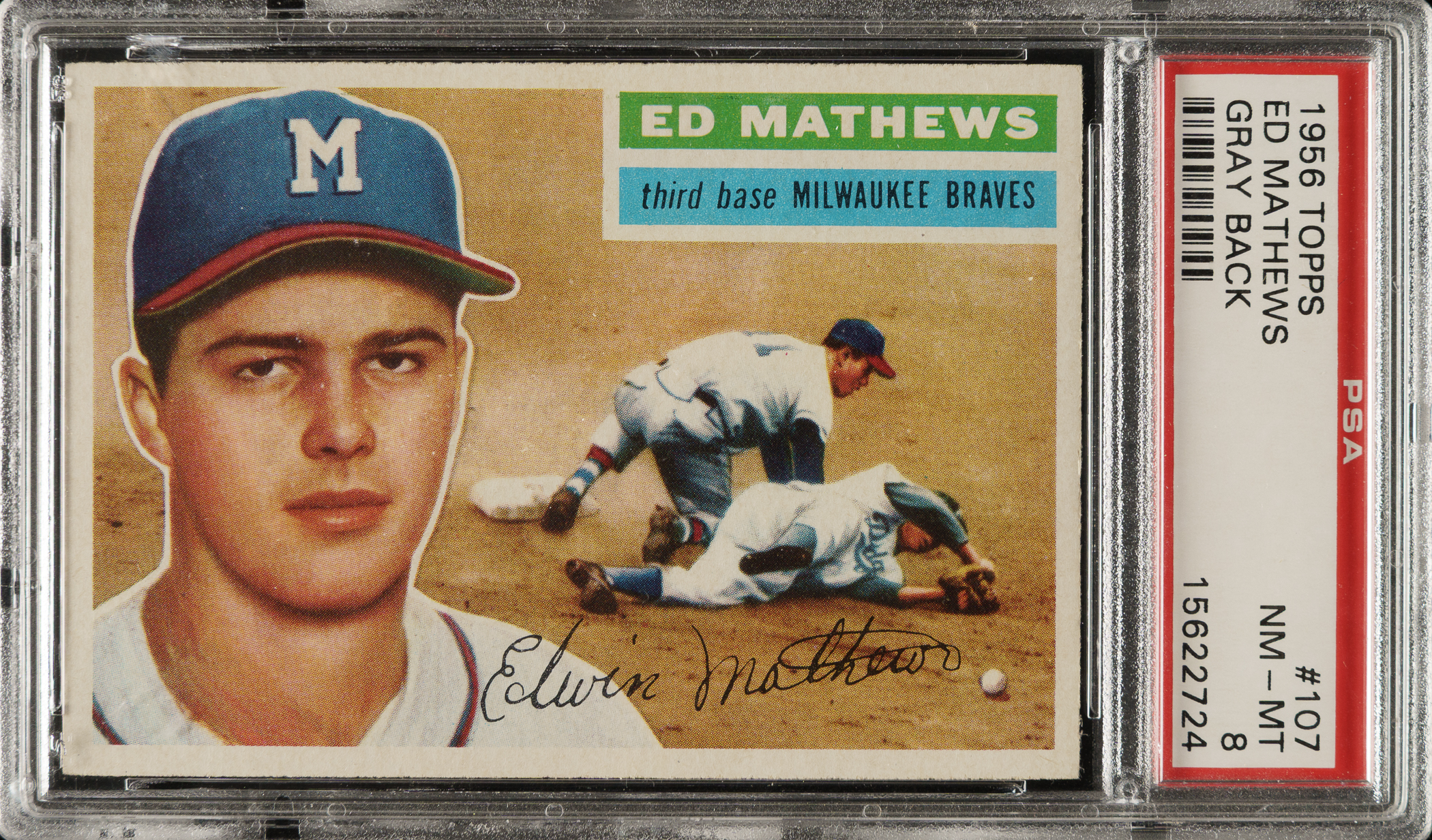 Graded NM-MT 8 by PSA. Milwaukee Braves Hall of Famer Ed Mathews.