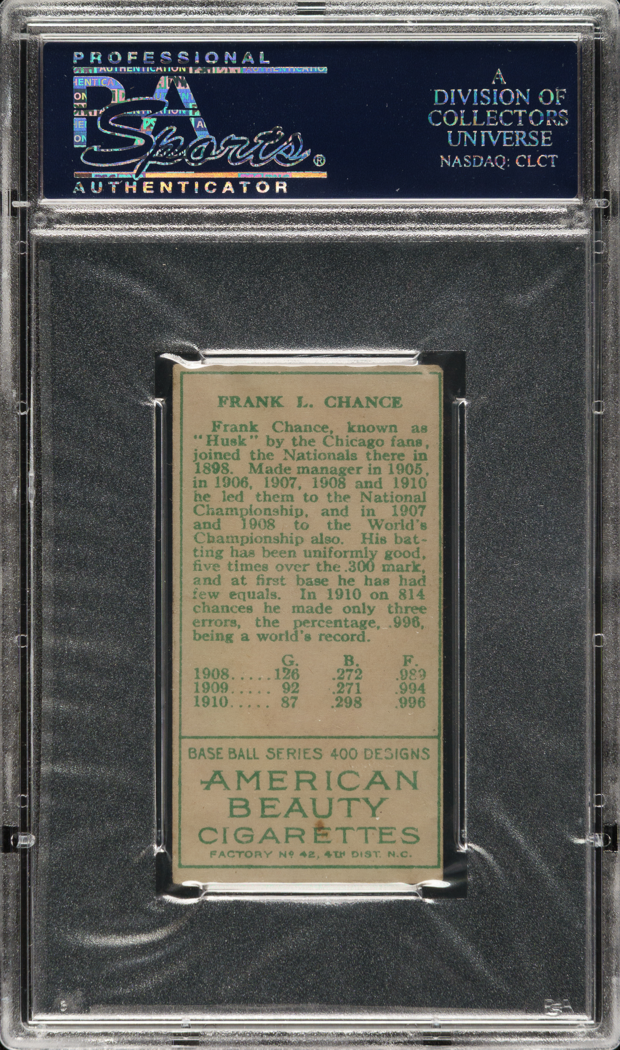 Graded VG-EX+ 4.5 by PSA. Chicago Cubs Hall of Famer Frank Chance.