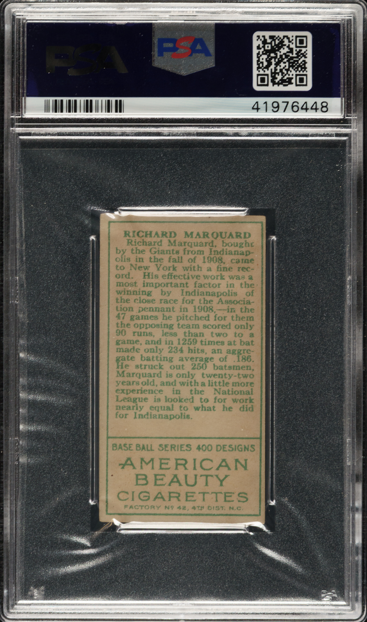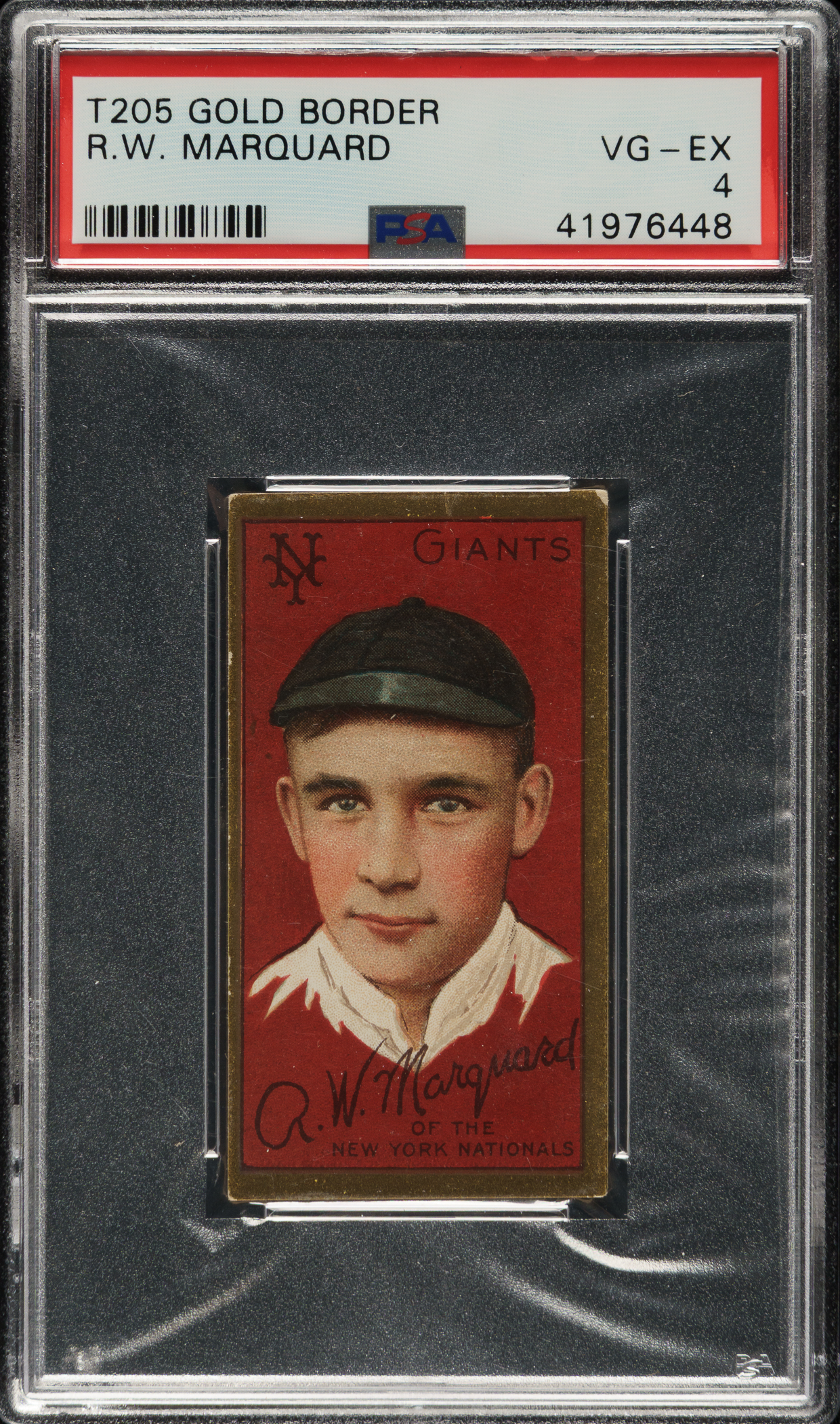 Graded VG-EX 4 by PSA. New York Giants Hall of Famer Rube Marquard.