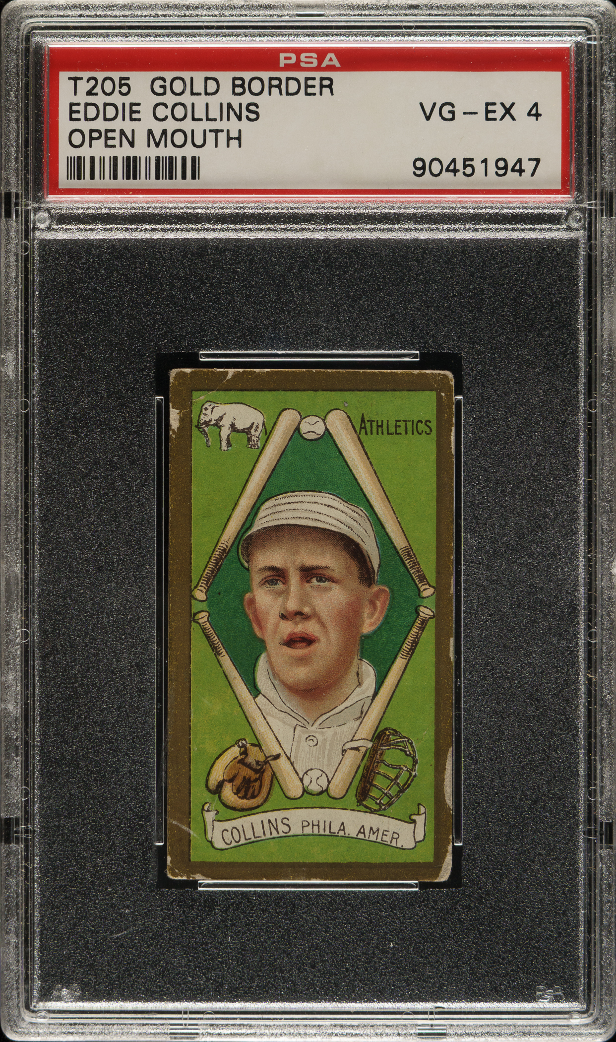 Graded VG-EX 4 by PSA. Mouth open variation. Philadelphia Athletics Hall of Famer Eddie Collins.