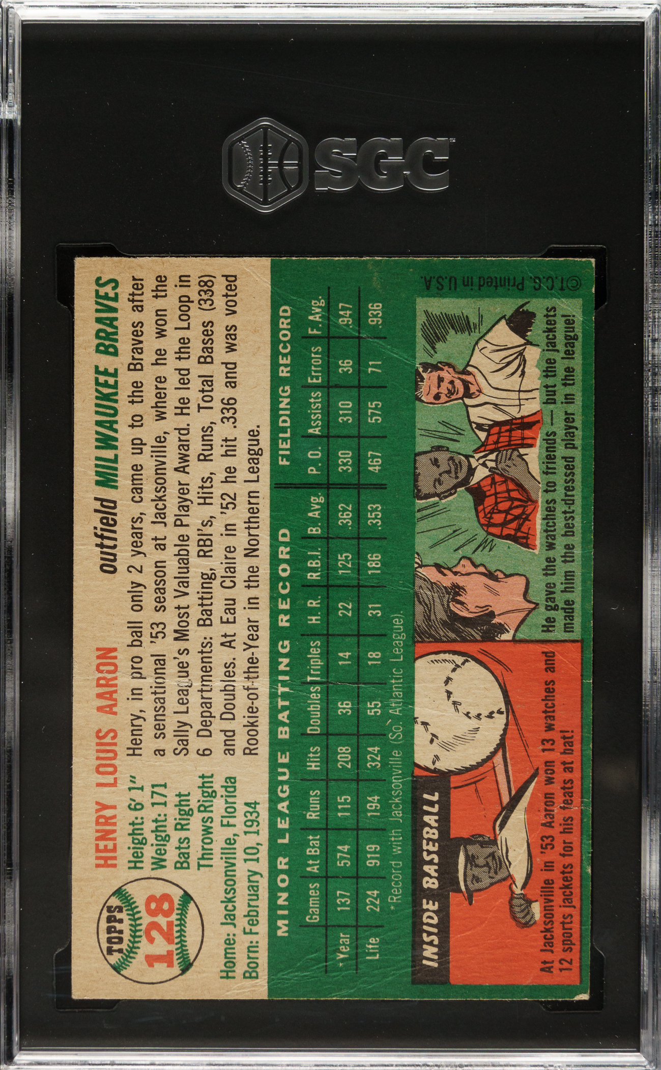 Lot # 1287: 1954 Topps #128 Hank Aaron Rookie SGC POOR 1