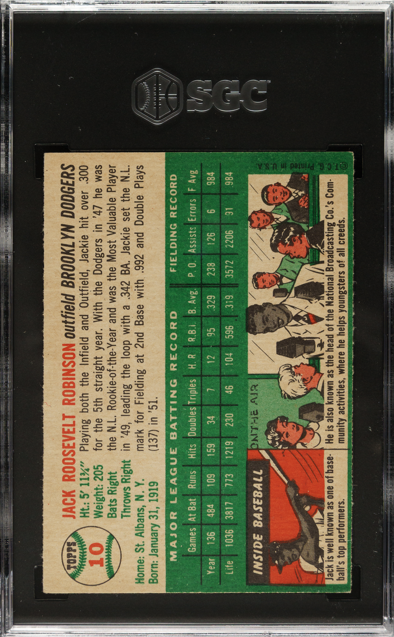 Graded EX 5 by SGC. Brooklyn Dodgers Hall of Famer Jackie Robinson.