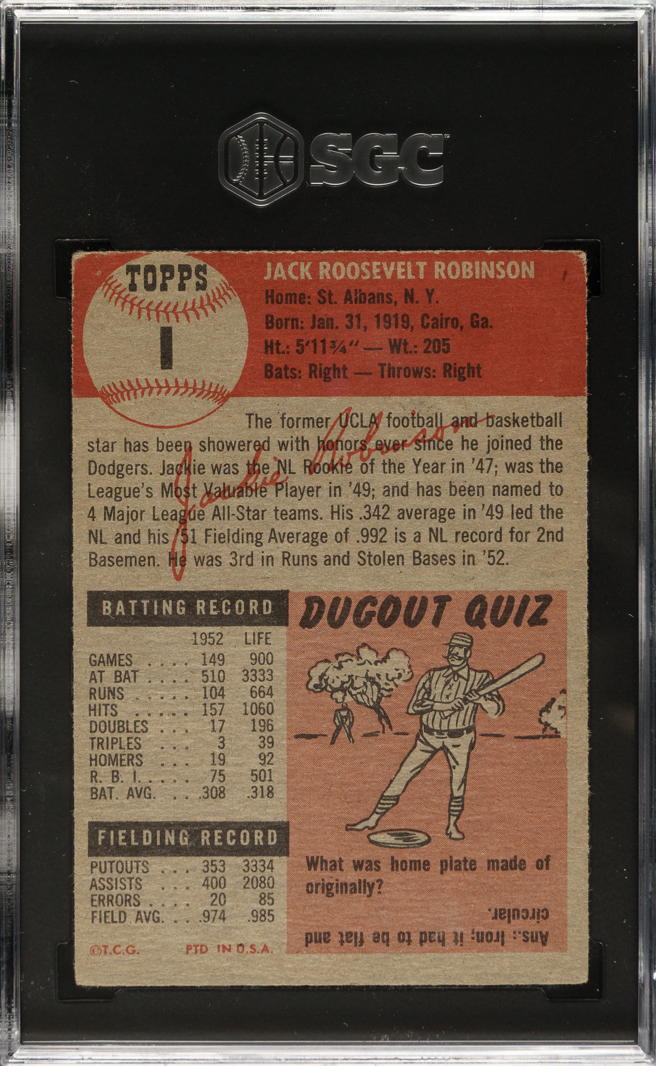 Graded VG/EX+ 4.5 by SGC (submitted by REA). Brooklyn Dodgers Hall of Famer Jackie Robinson.