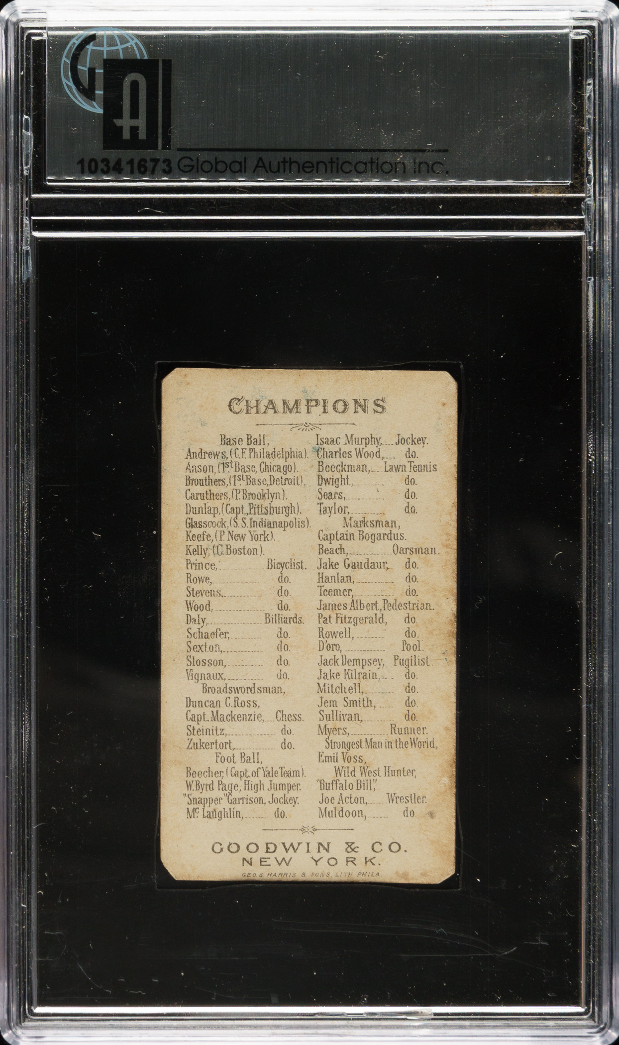 Encapsulated as "Authentic" by GAI. Boston Beaneaters Hall of Famer Mike "King" Kelly.