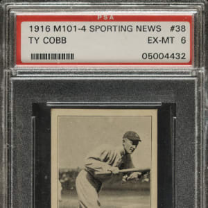 Graded EX-MT 6 by PSA. Outstanding example of this popular black-and-white card featuring the legendary Detroit Tigers Hall of Famer Ty Cobb in one of his most classic poses. This is one of Cobb's most desirable cards and it is very rarely offered! The card exhibits superb photo contrast and strong corners (weaker top left). The blank reverse is clean. This is an exceptional high-grade example, which would be a significant addition to any world-class vintage card, Ty Cobb, or Hall of Fame baseball-card collection.