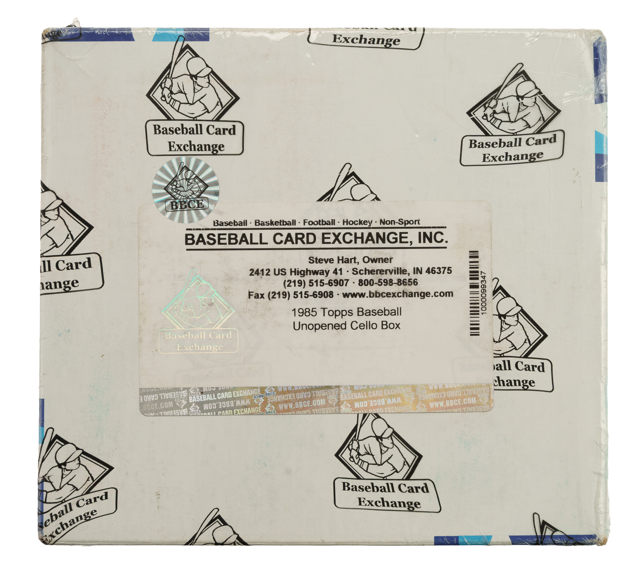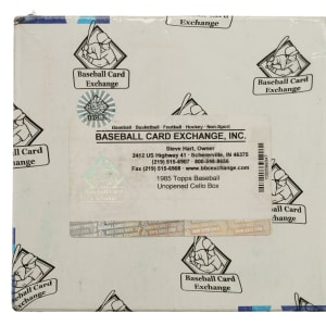 Complete original unopened cello box from the 1985 Topps baseball series. The box contains 24 packs. The entire box comes shrink-wrapped by Baseball Card Exchange (owned by Steve Hart, the foremost expert on unopened material).