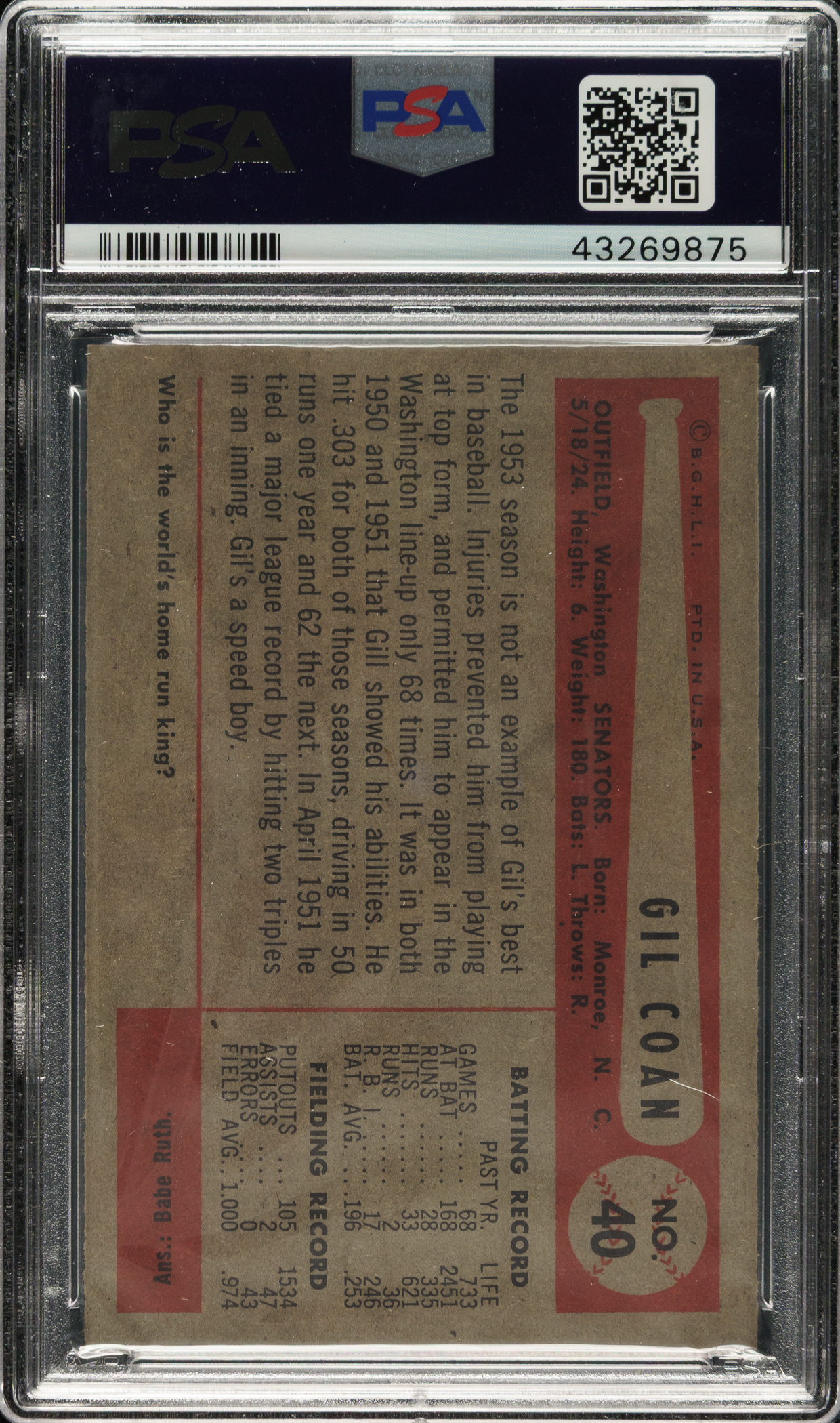 Graded MINT 9 by PSA. Washington Senators. One of only four examples graded at this level with none higher out of 294 cards evaluated by PSA to date!