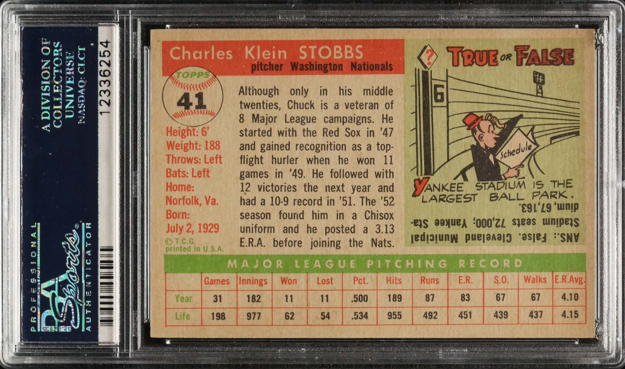 Graded MINT 9 by PSA. Washington Senators. One of twelve examples graded at this level with none higher out of 725 cards evaluated by PSA to date!