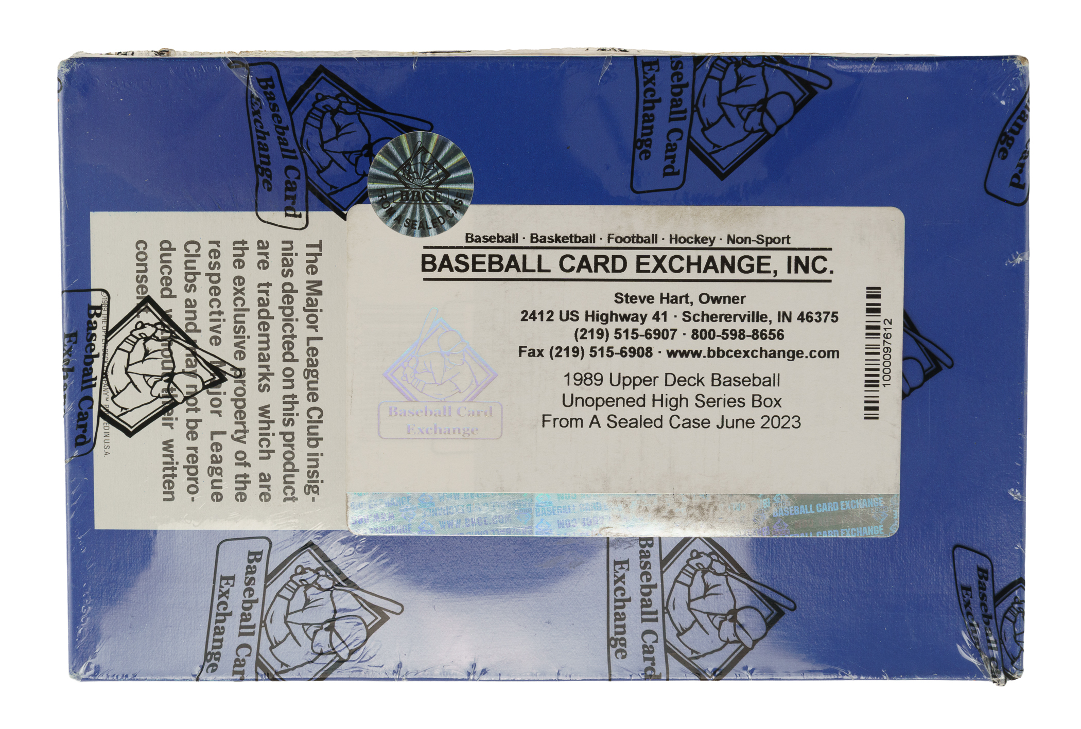 Complete, unopened 1989 Upper Deck baseball high-number series wax box containing 36 packs. The 1989 Upper Deck high-number series includes rookie cards of Jim Abbott, Tom Gordon, Steve Finley, and Omar Vizquel. Also featured in this series is a card of Hall of Famer Nolan Ryan throwing a football. The box comes shrink-wrapped by Baseball Card Exchange (owned by Steve Hart, the foremost expert on unopened material) and bears a certified designation as having originated from a sealed case.