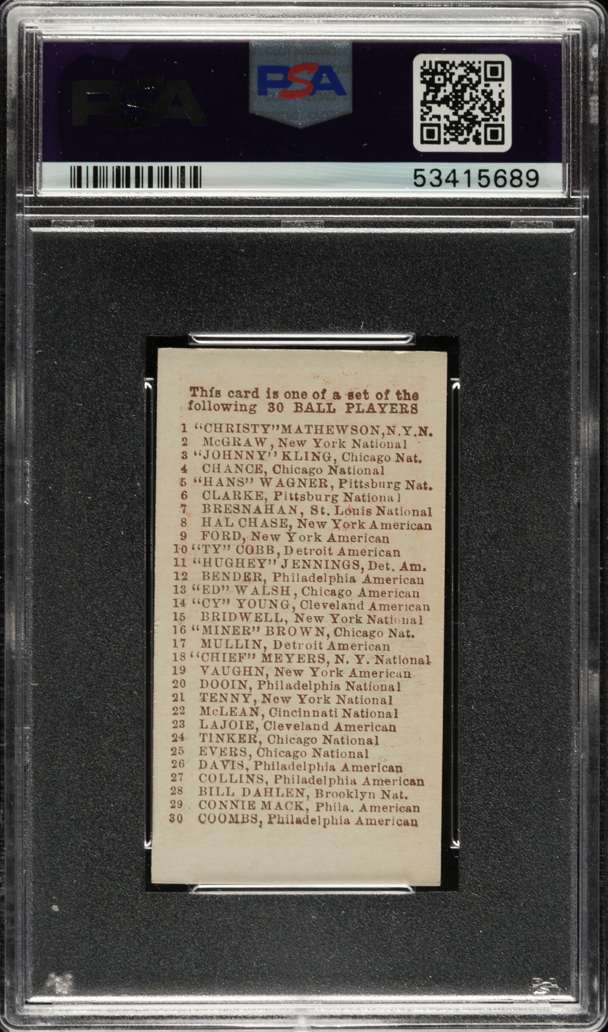 Graded MINT 9 by PSA. Chicago Cubs. Highest-graded example!