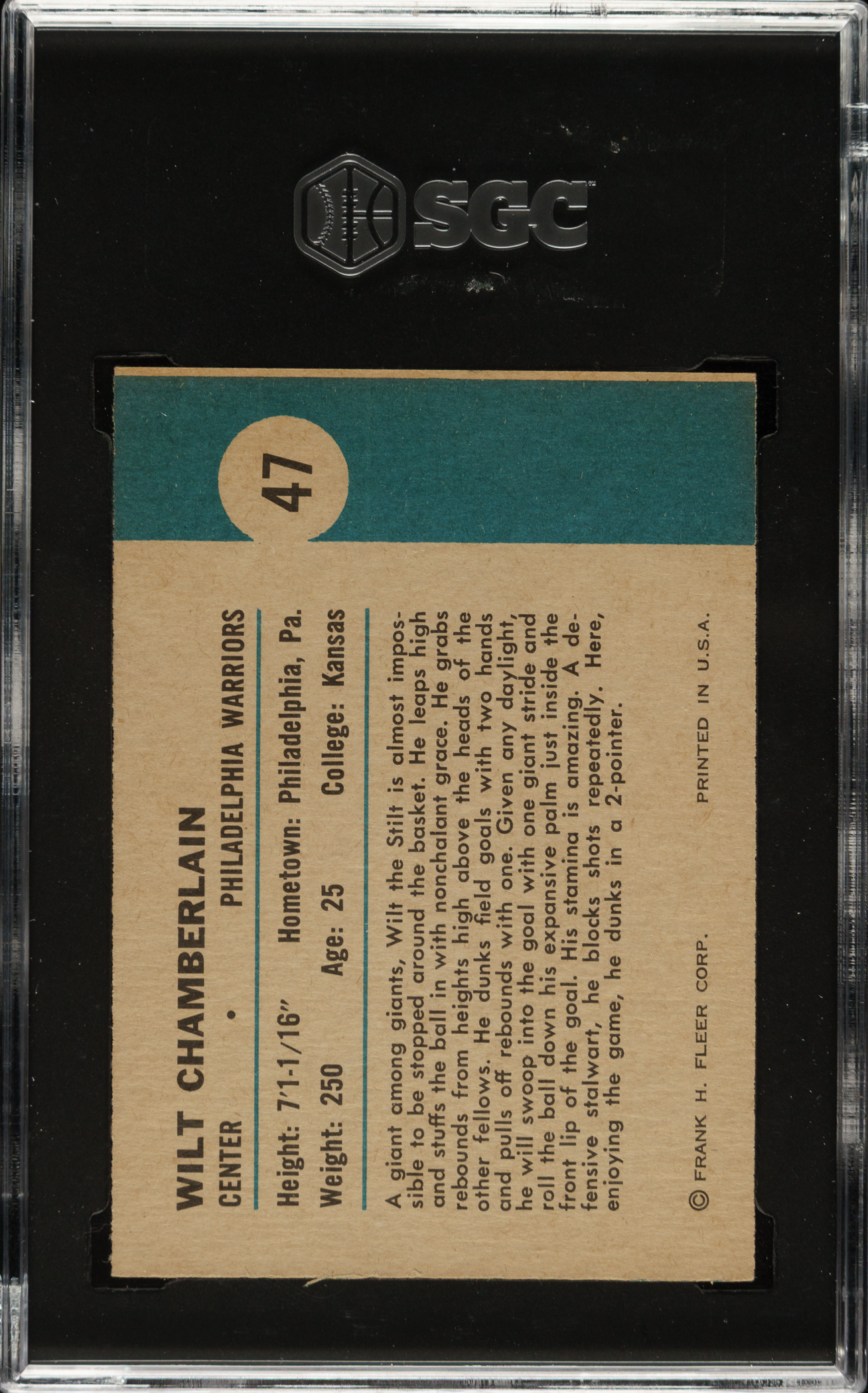 Graded NM 7 by SGC. Philadelphia Warriors Hall of Famer Wilt Chamberlain.
