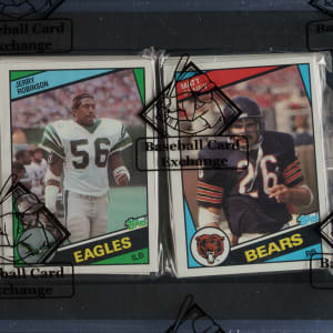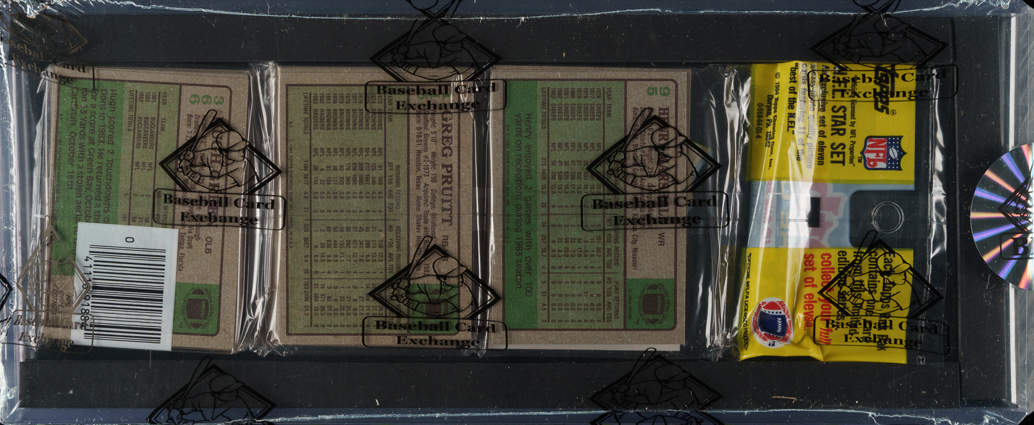 Original unopened rack pack of fifty-four 1984 Topps football cards. This pack comes shrink-wrapped by Baseball Card Exchange (owned by Steve Hart, the foremost expert on unopened material).