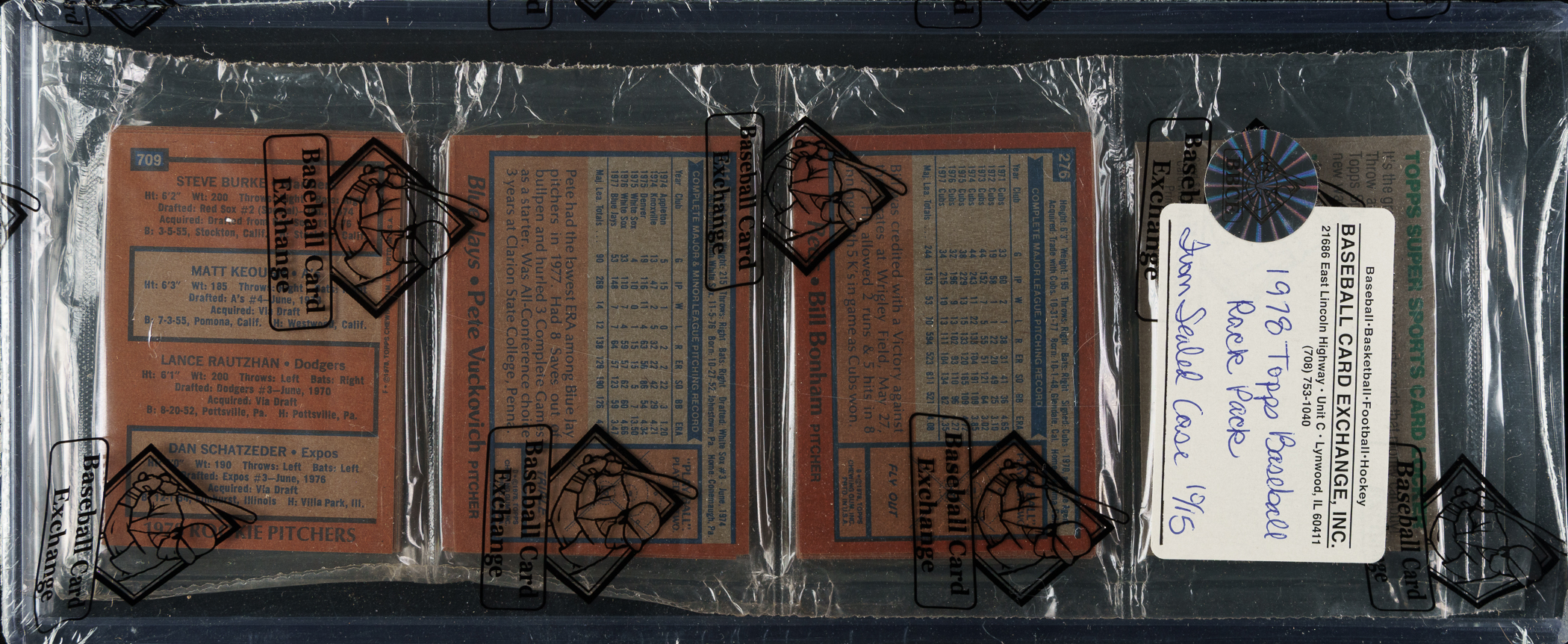 Original unopened rack pack of thirty-nine 1978 Topps baseball cards with Hall of Famer Lou Brock's Record Breaker card showing on the bottom. This pack comes shrink-wrapped by Baseball Card Exchange (owned by Steve Hart, the foremost expert on unopened material) and bears his certified designation as having originated from a sealed case.