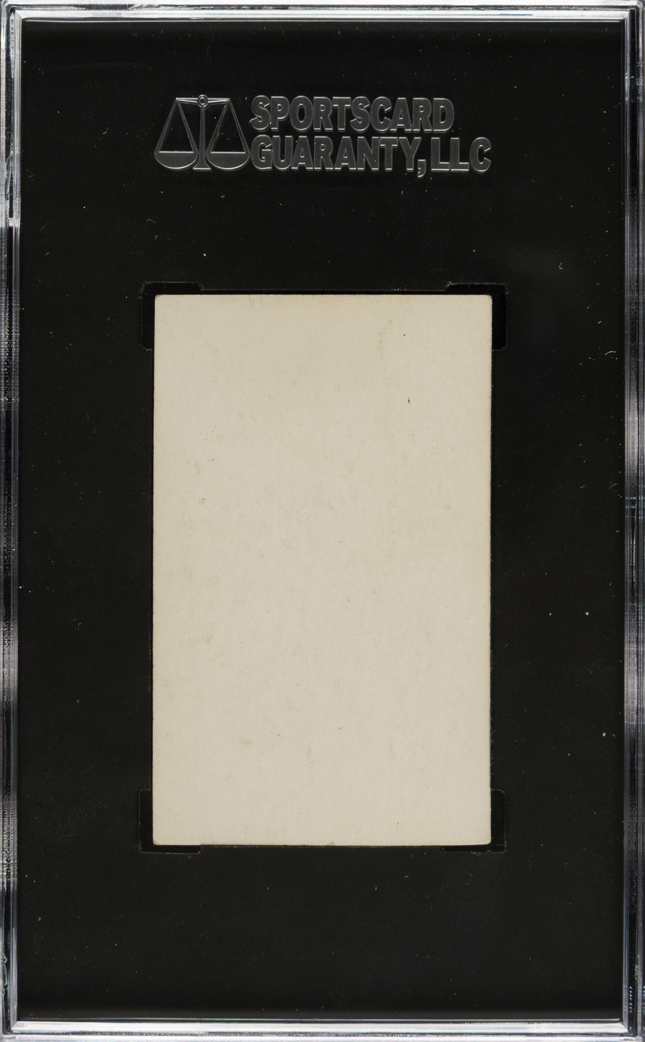 Graded EX/NM+ 6.5 by SGC. This is the ONLY example graded at this level by SGC with none higher! Extremely high-grade example of this significant rarity, which is one of the all-time great baseball cards: Joe DiMaggio's second-year card. This card was issued in the 1935 Zeenut series of Pacific Coast League players. Joe DiMaggio first made his debut in professional baseball with the San Francisco Seals of the PCL, and he appeared on Zeenut cards in both 1934 and 1935. This is his 1935 throwing-pose card, the second baseball card ever issued of DiMaggio, years before he joined the Yankees. (DiMaggio is featured batting on his 1934 Zeenut card.) One of the interesting aspects of DiMaggio’s Zeenut cards is the spelling of his name. When DiMaggio joined the Seals, local newspapers misspelled his name “DeMaggio,” and that error, which was repeated often, appears on all of his Zeenut cards. This is an extremely attractive example with superb image quality, strong corners, and a clean blank reverse. As is usually the case with Zeenuts, the coupon at the bottom of this card has been neatly clipped away, as intended, to be redeemed for valuable prizes. This is a very significant and rare Joe DiMaggio card in stunning high-grade!