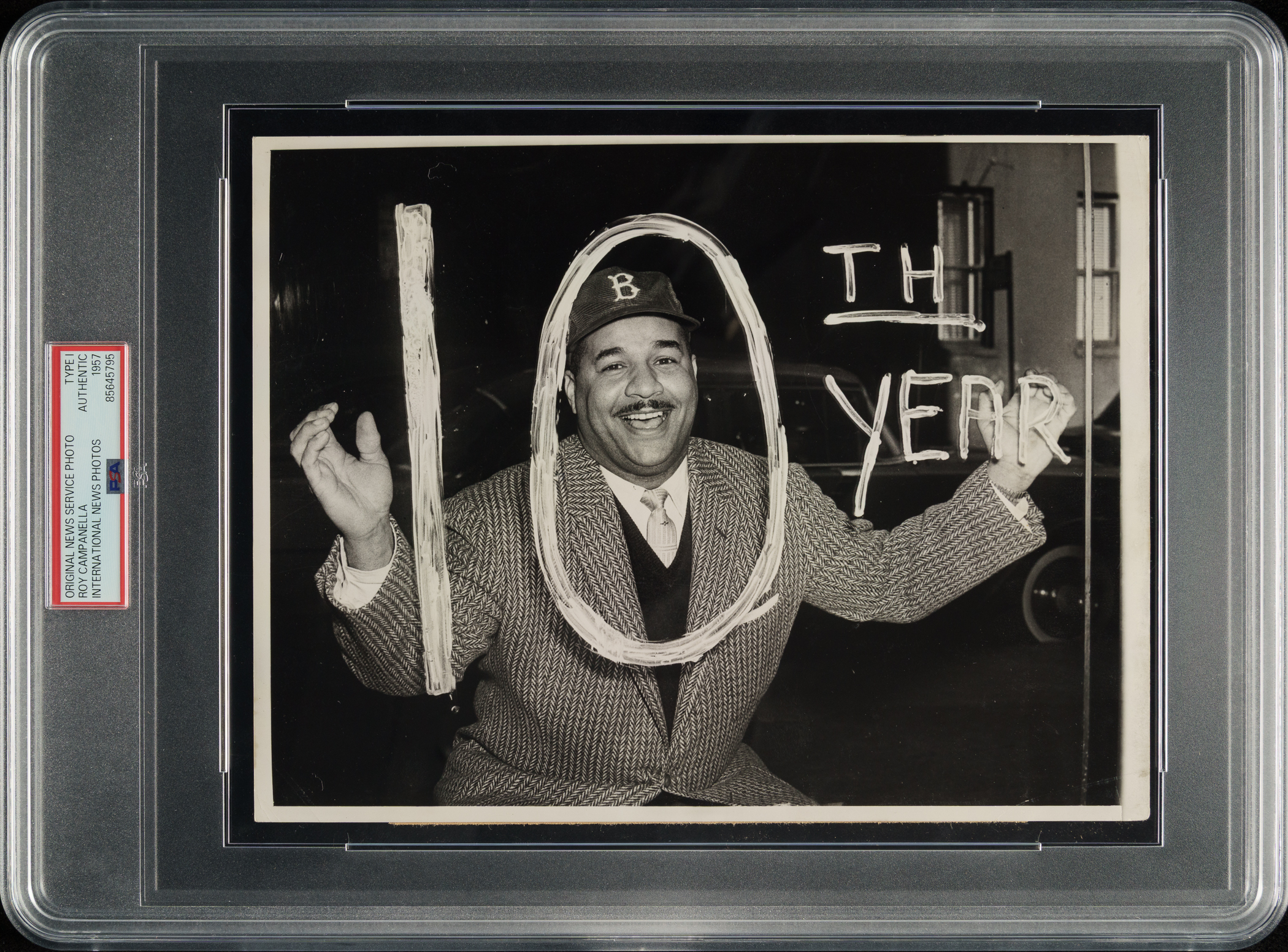 Encapsulated and certified as an original Type I photograph by PSA/DNA. Brooklyn Dodgers Hall of Famer Roy Campanella. Dimensions: 7 x 9-1/8 inches.