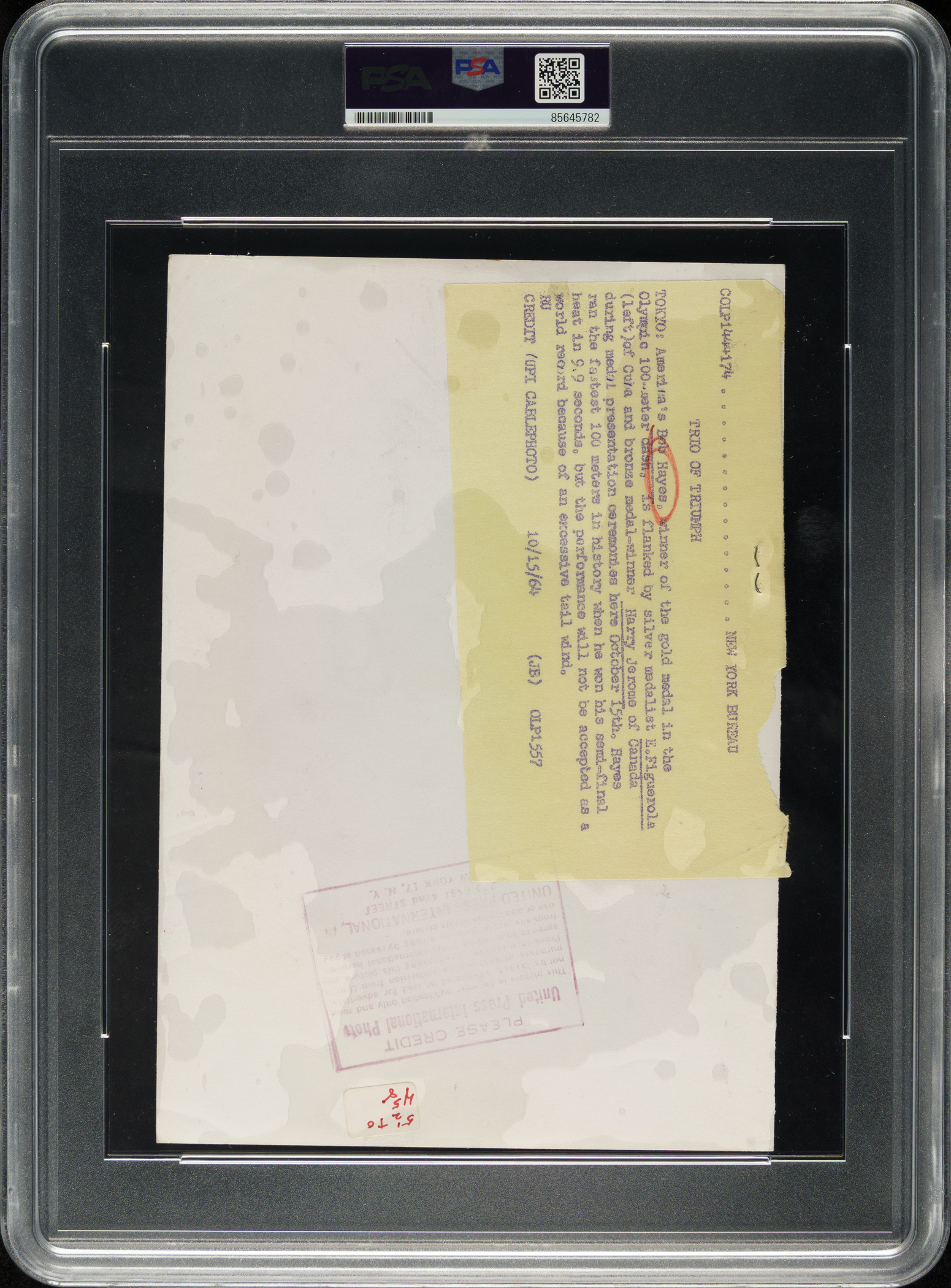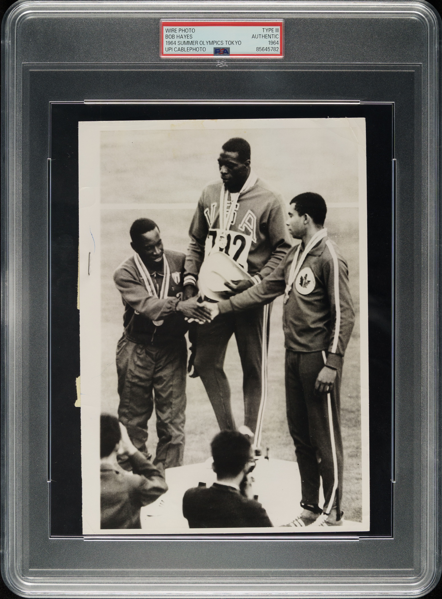 Encapsulated and certified as an original Type III photograph by PSA/DNA. United States sprinter Bob Hayes. Dimensions: 6-3/8 x 9-1/8 inches.