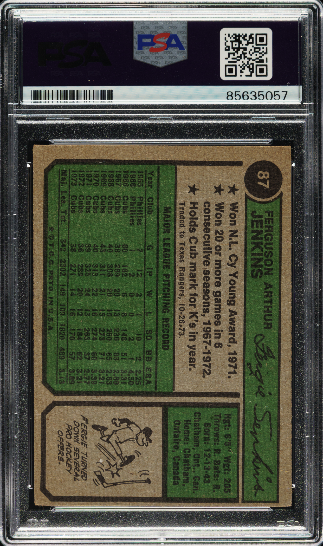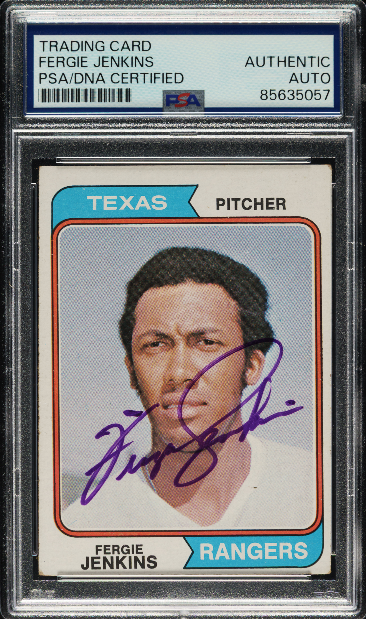 PSA/DNA has encapsulated the card, grading the signature Authentic. Texas Rangers Hall of Famer Fergie Jenkins.