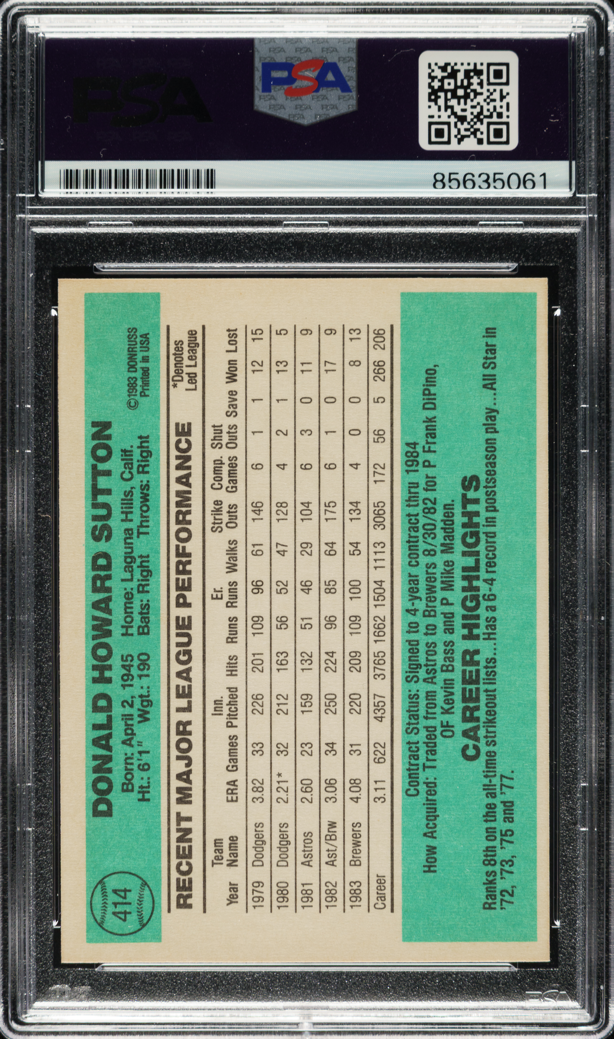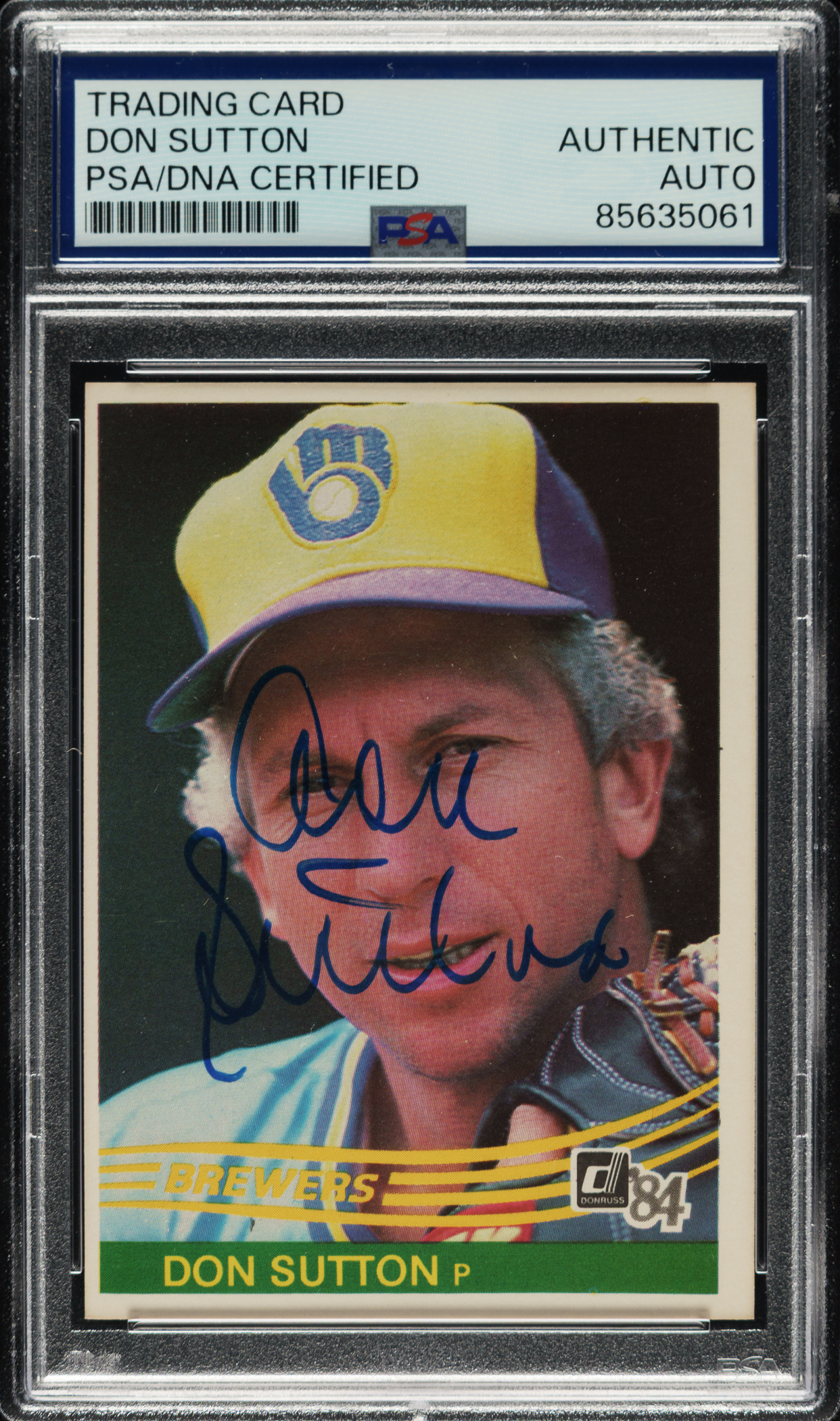PSA/DNA has encapsulated the card, grading the signature Authentic. Milwaukee Brewers Hall of Famer Don Sutton.
