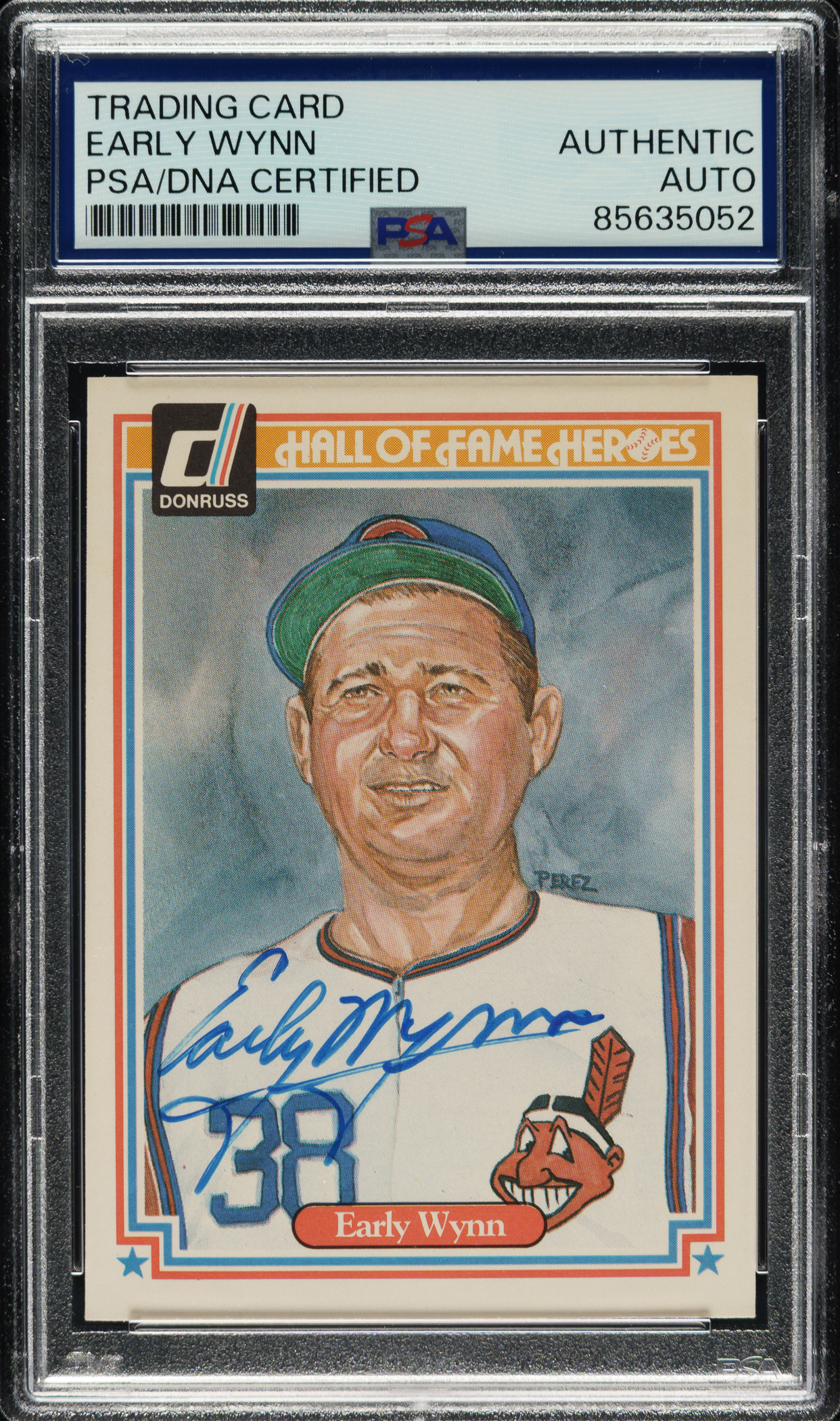 PSA/DNA has encapsulated the card, grading the signature Authentic. Cleveland Indians Hall of Famer Early Wynn.