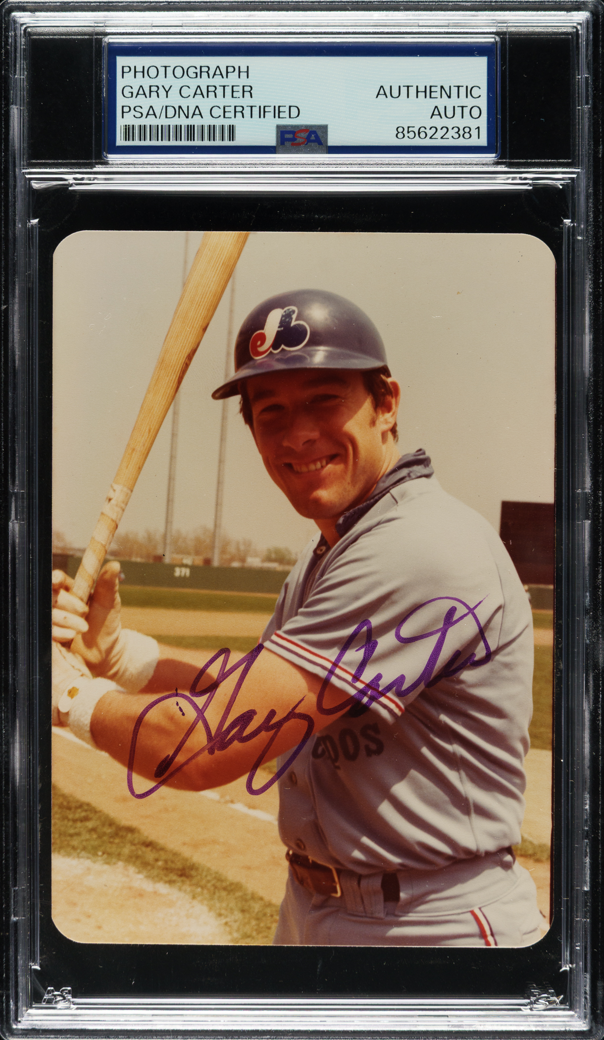 PSA/DNA has encapsulated the card, grading the signature Authentic. Montreal Expos Hall of Famer Gary Carter.