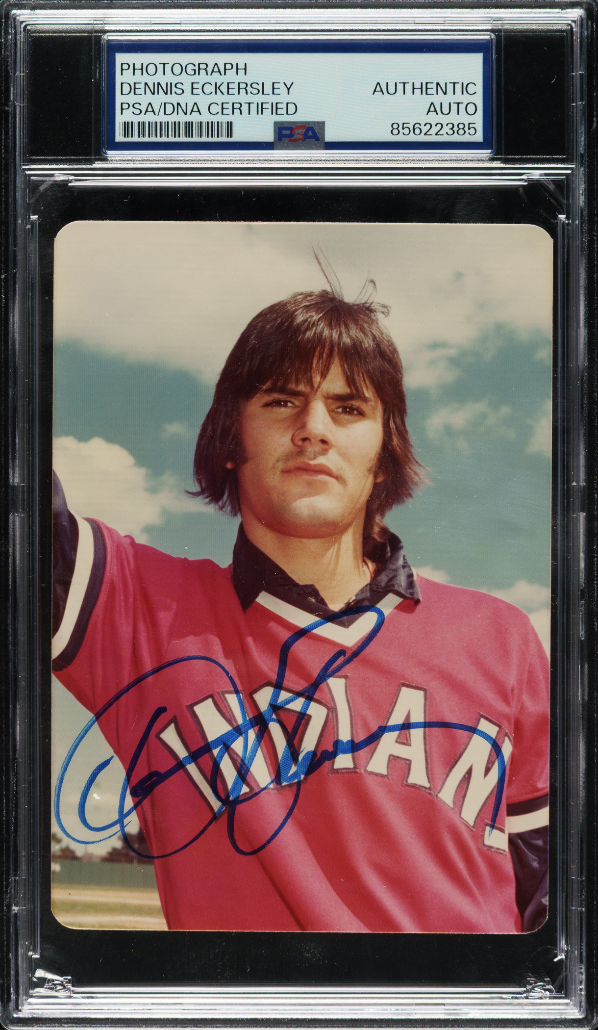 PSA/DNA has encapsulated the card, grading the signature Authentic. Cleveland Indians Hall of Famer Dennis Eckersley.