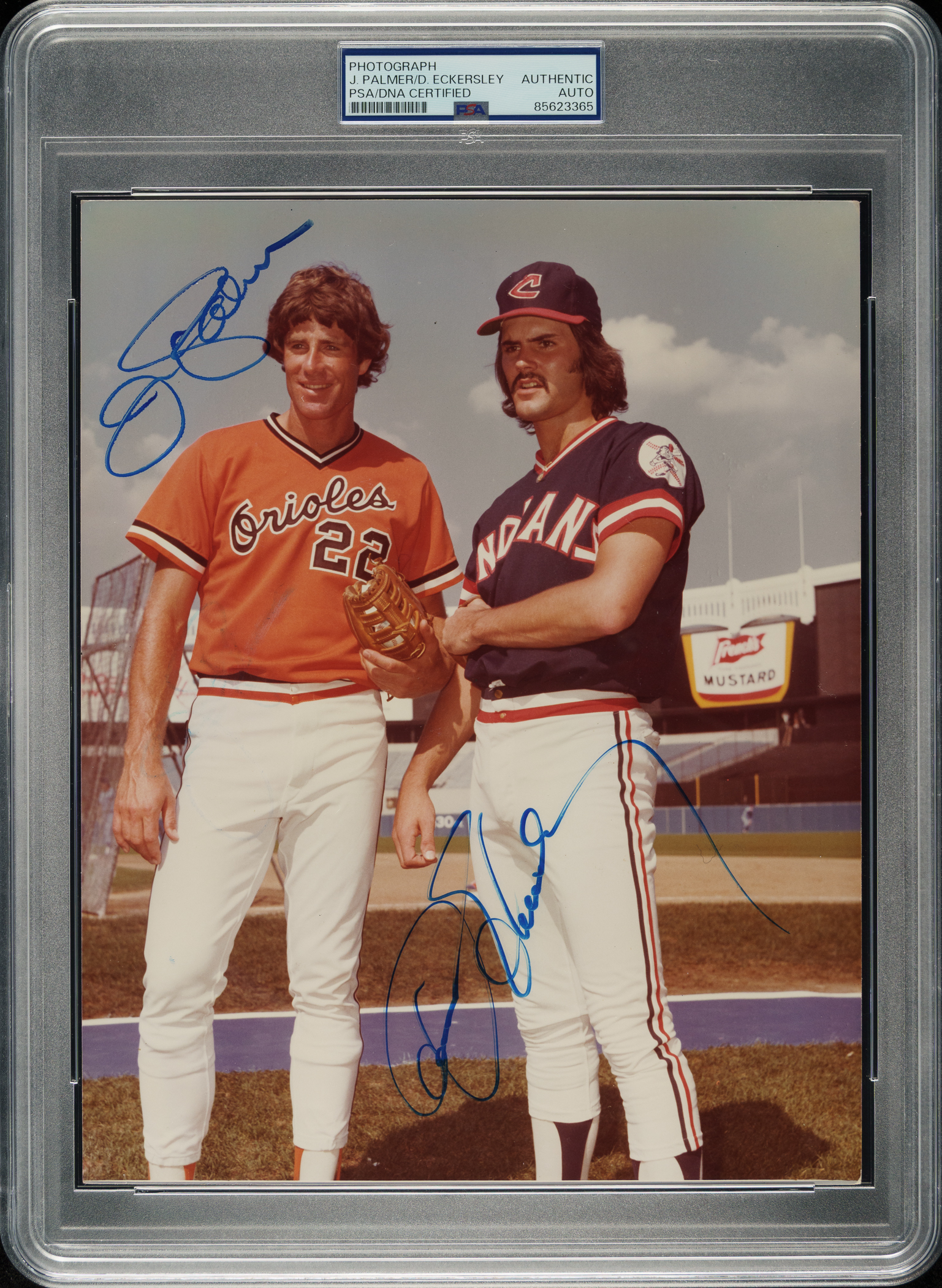 Baltimore Orioles and Cleveland Indians Hall of Famers Jim Palmer and Dennis Eckersley signed photograph. PSA/DNA has encapsulated the photograph, grading the signature Authentic.