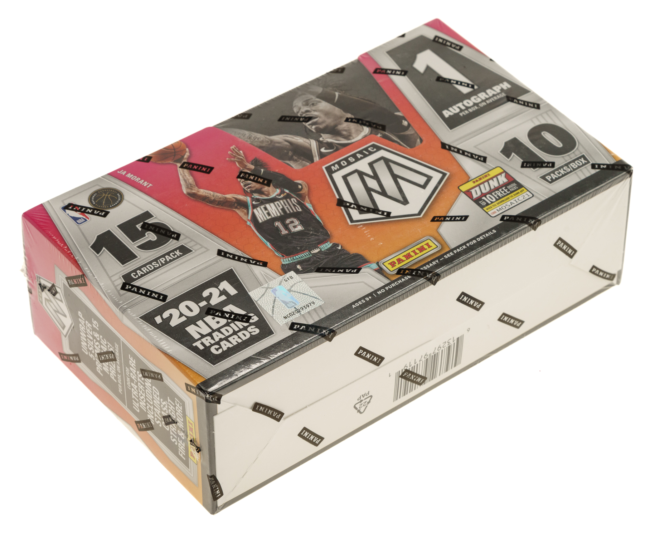 Lot # 2822: 2020-2021 Panini Mosaic Basketball Factory-Sealed Unopened Hobby Box (10 Packs) - Anthony Edwards and LaMelo Ball Rookie Year