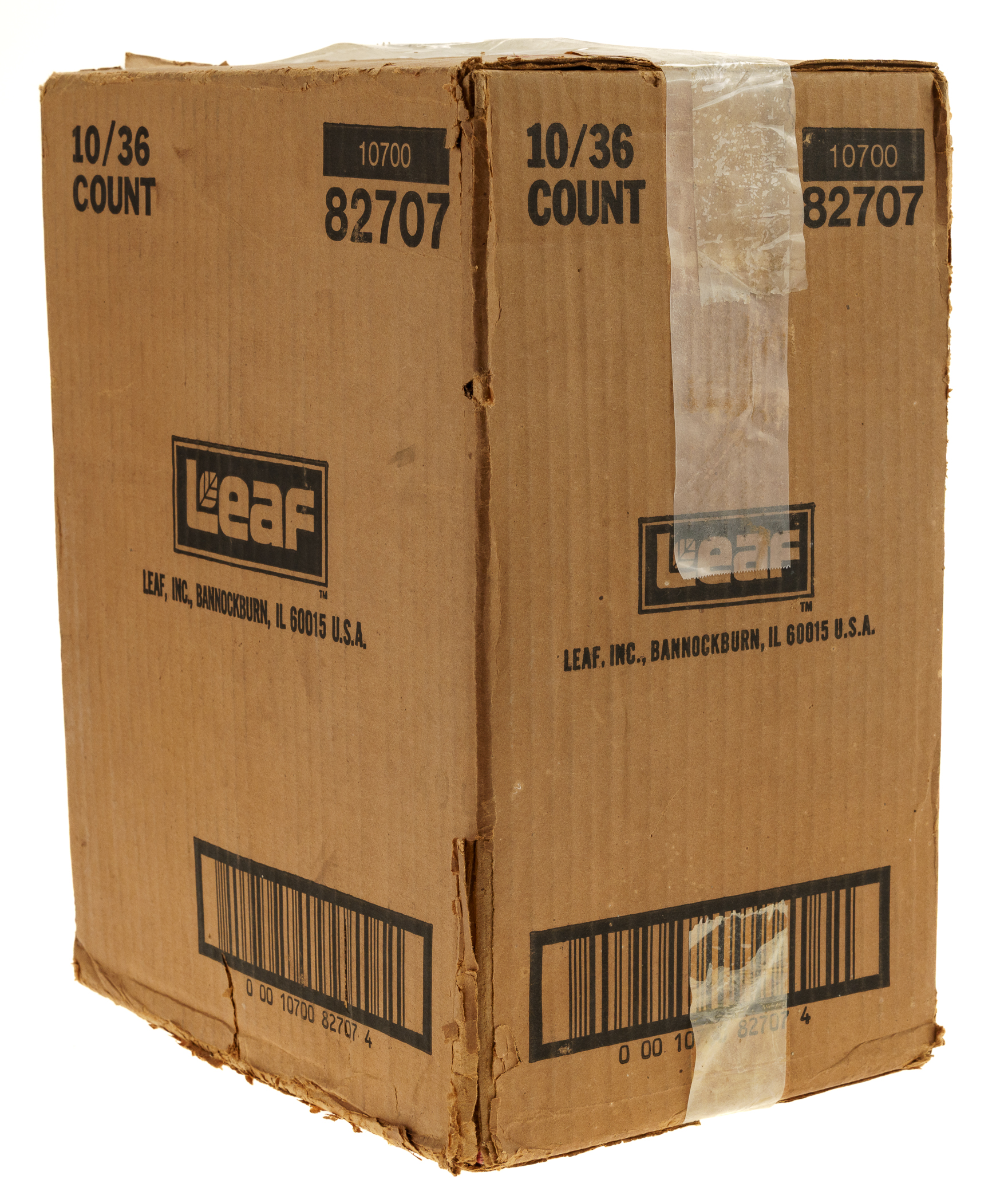 Complete, original factory-sealed wax case of 1990 Donruss baseball containing 10 boxes with 36 packs per box for a total of 360 packs. With each pack containing 15 cards, the case represents a total of 5,400 cards. Original factory seals intact (the tape is loose on top) with minor outer box wear. The size/weight of this item requires that there will be an additional shipping charge for this lot.
