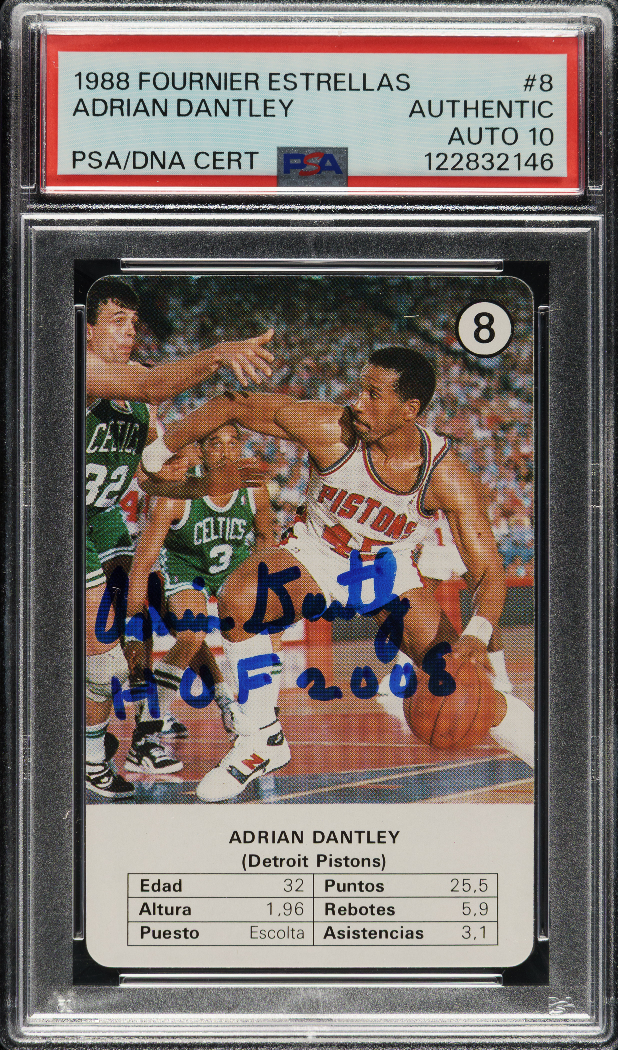 PSA/DNA has encapsulated the card, grading the signature GEM MINT 10. Detroit Pistons basketball Hall of Famer Adrian Dantley.
