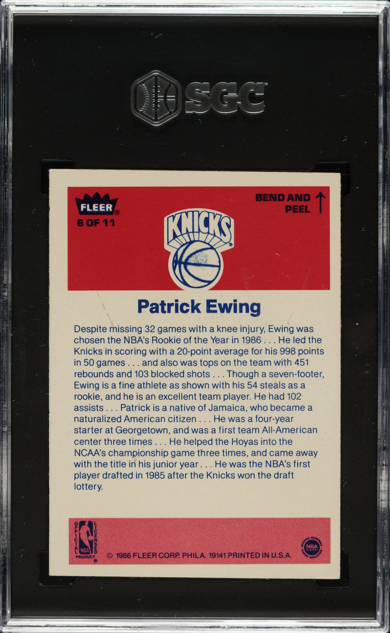 Graded EX/NM 6 by SGC. New York Knicks basketball Hall of Famer Patrick Ewing.