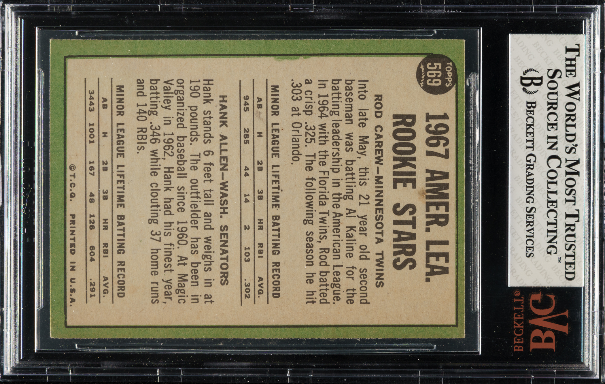 Graded EX 5 by BVG. Minnesota Twins Hall of Famer Rod Carew.