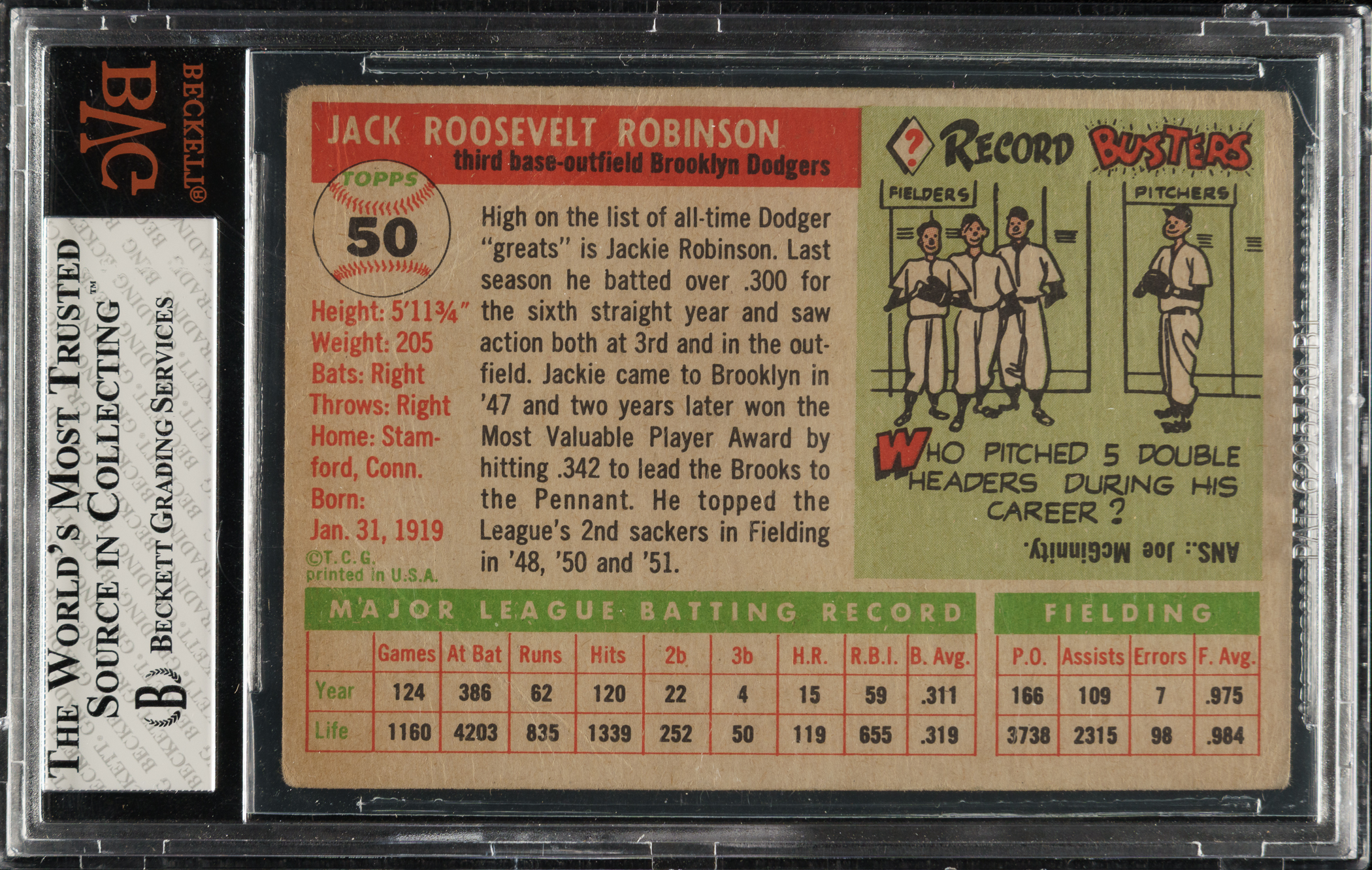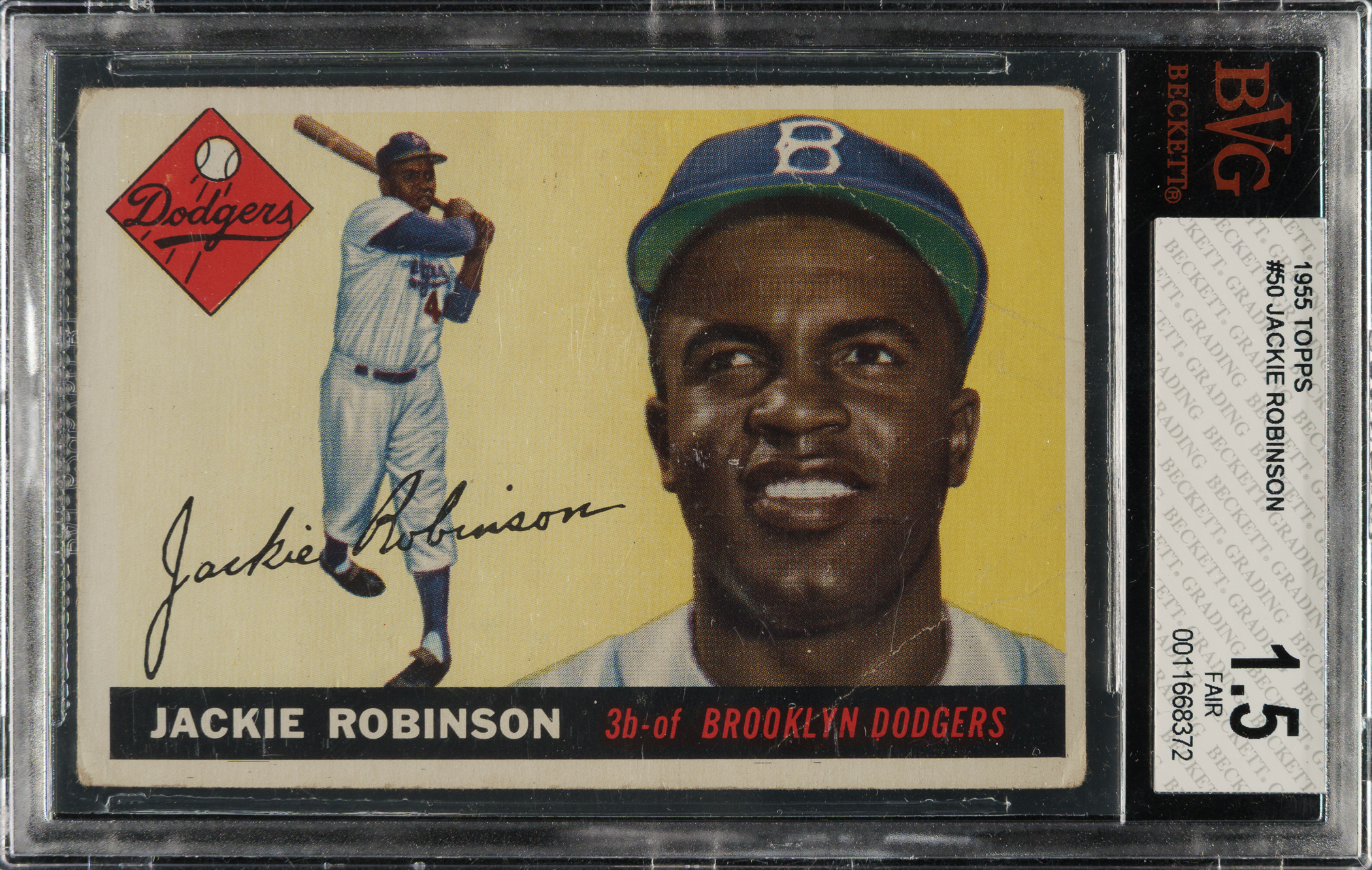 Graded FAIR 1.5 by BVG. Brooklyn Dodgers Hall of Famer Jackie Robinson.