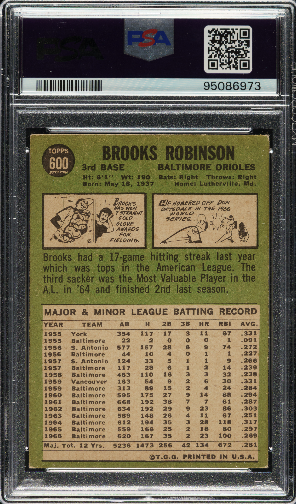Graded VG-EX 4 by PSA. Baltimore Orioles Hall of Famer Brooks Robinson.