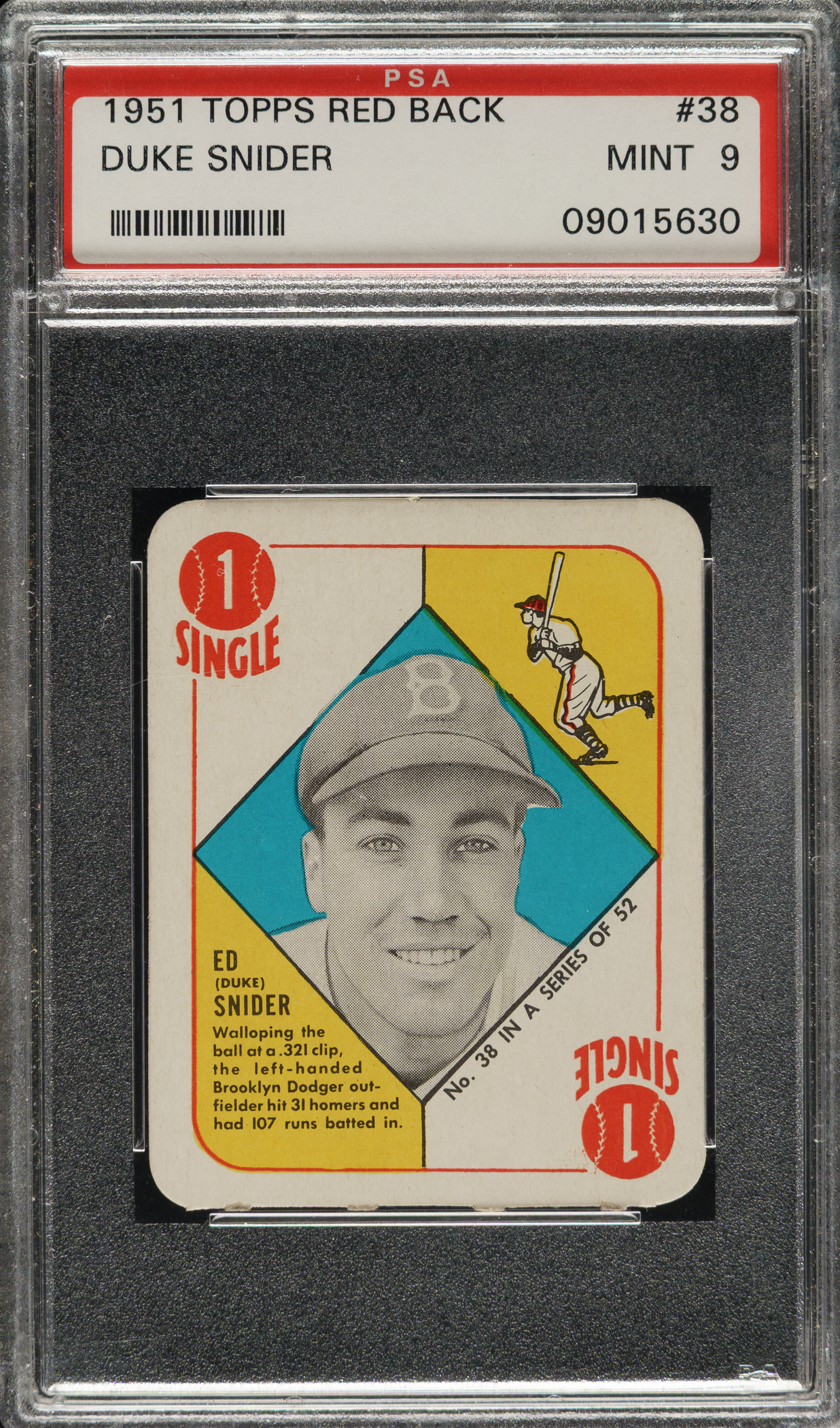 Graded MINT 9 by PSA. Los Angeles Dodgers Hall of Famer Duke Snider.