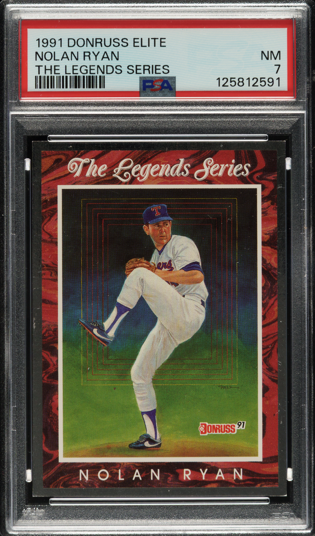 Graded NM 7 by PSA. Texas Rangers Hall of Famer Nolan Ryan.
