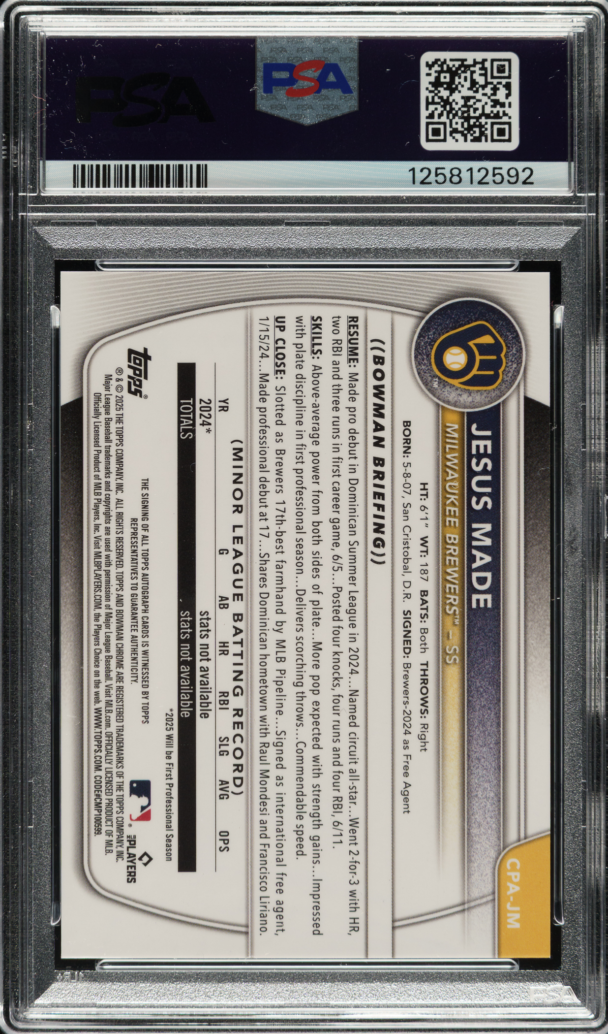 Graded MINT 9 by PSA. Milwaukee Brewers.