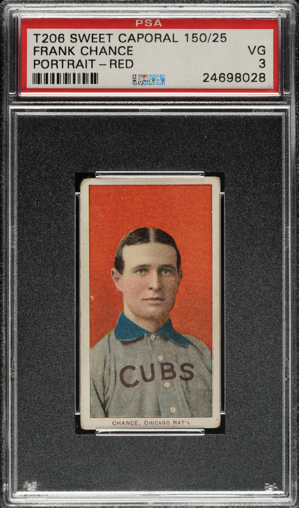 Lot # 183: 1909-1911 T206 White Border Frank Chance Portrait Red Background PSA VG 3