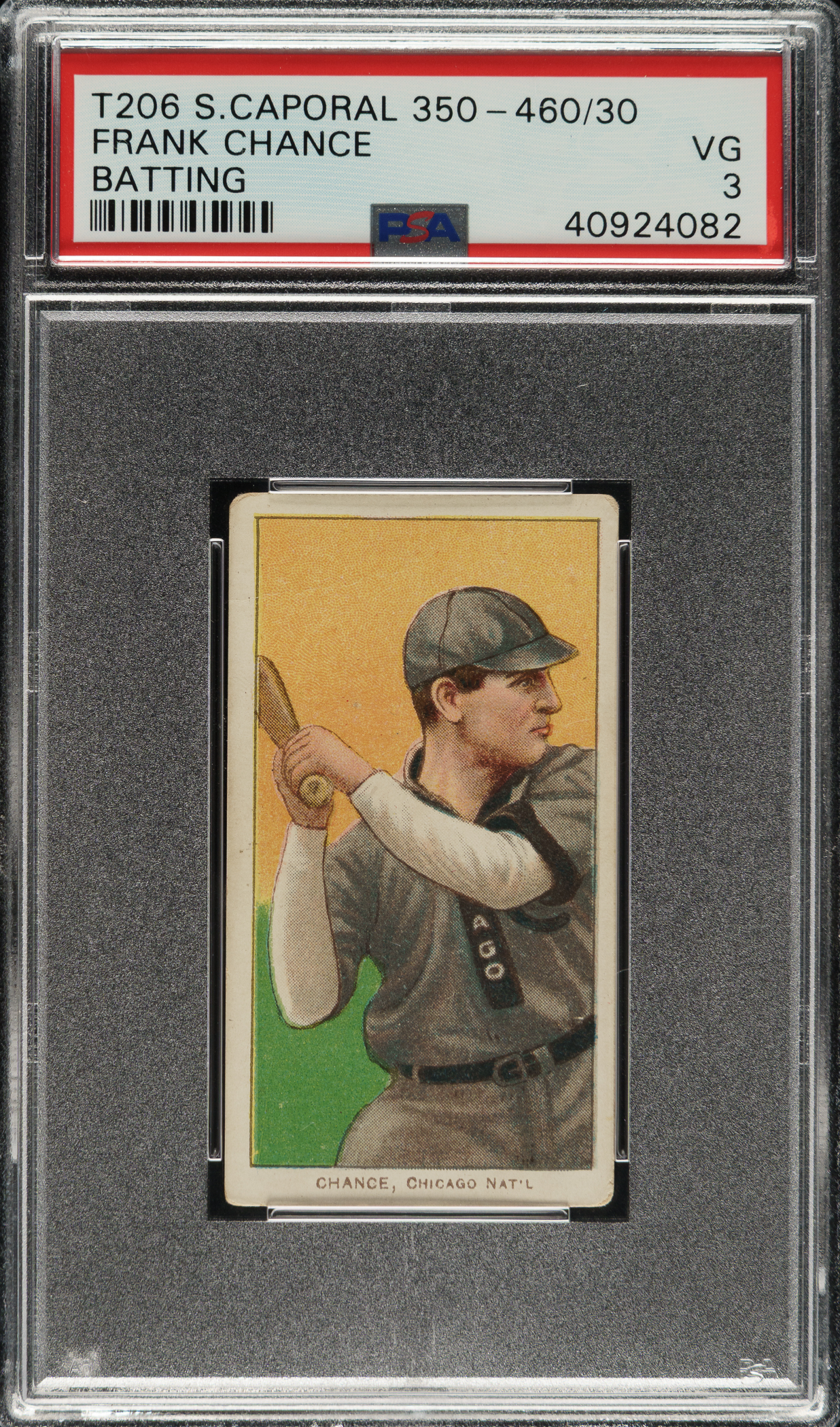 Lot # 181: 1909-1911 T206 White Border Frank Chance Batting PSA VG 3