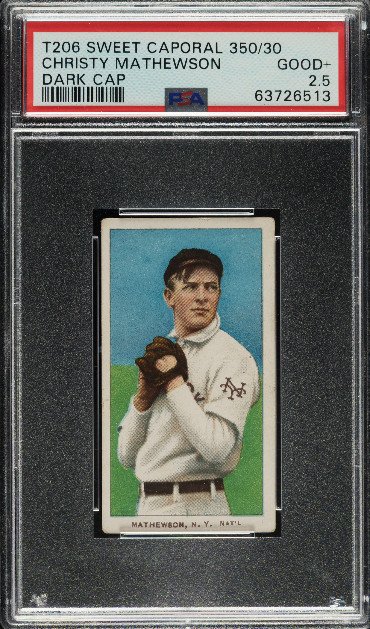 Graded GOOD+ 2.5 by PSA. New York Giants Hall of Famer Christy Mathewson.