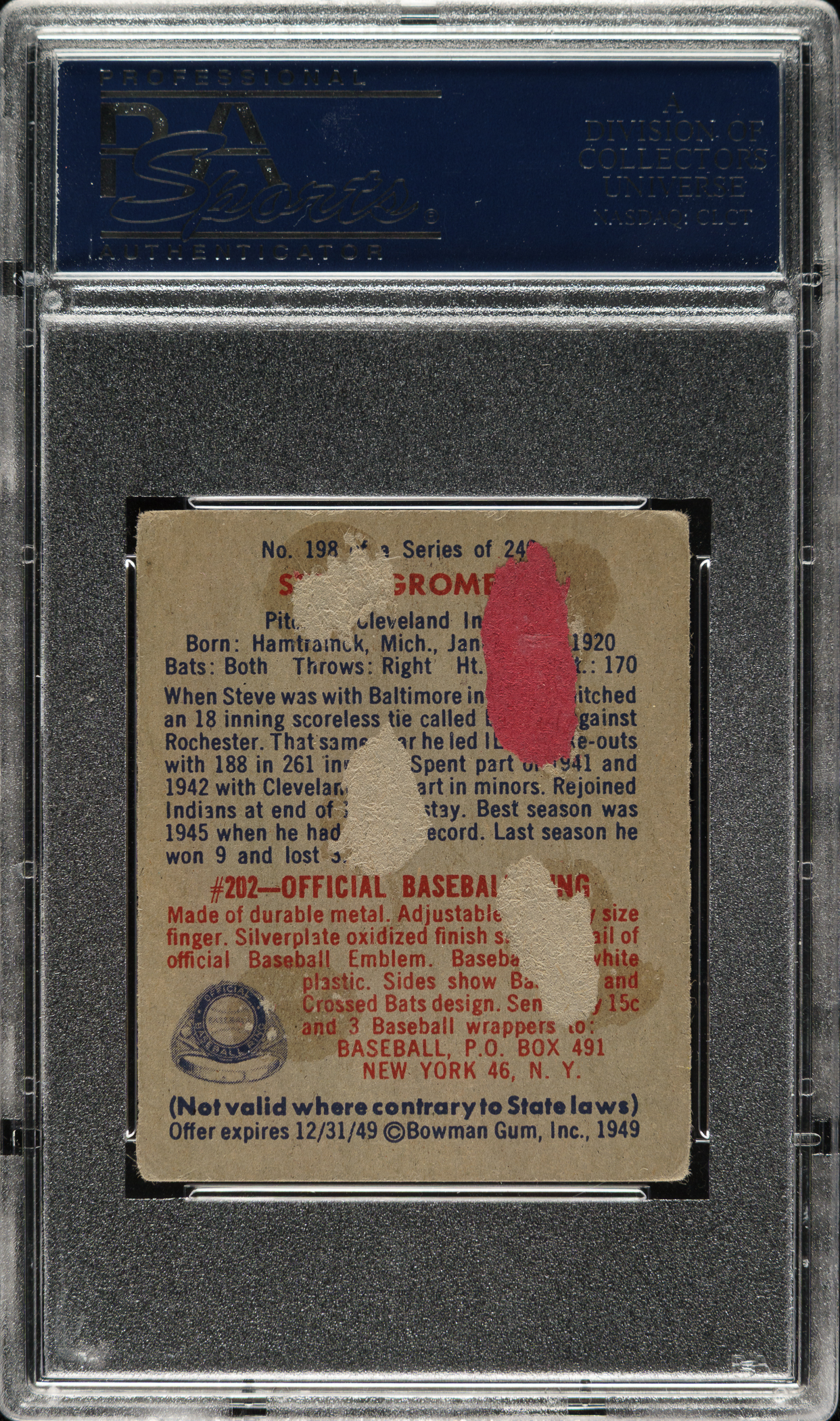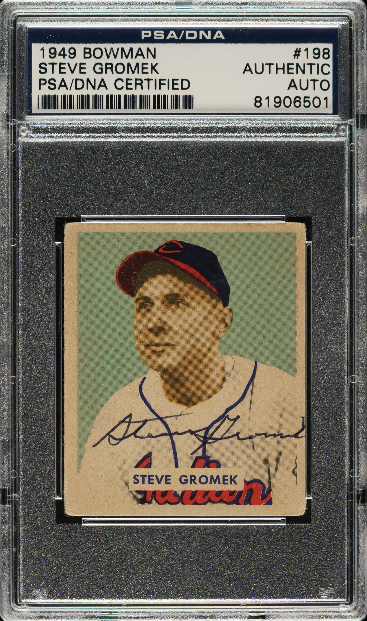 PSA/DNA has encapsulated the card, grading the signature Authentic. Cleveland Indians.