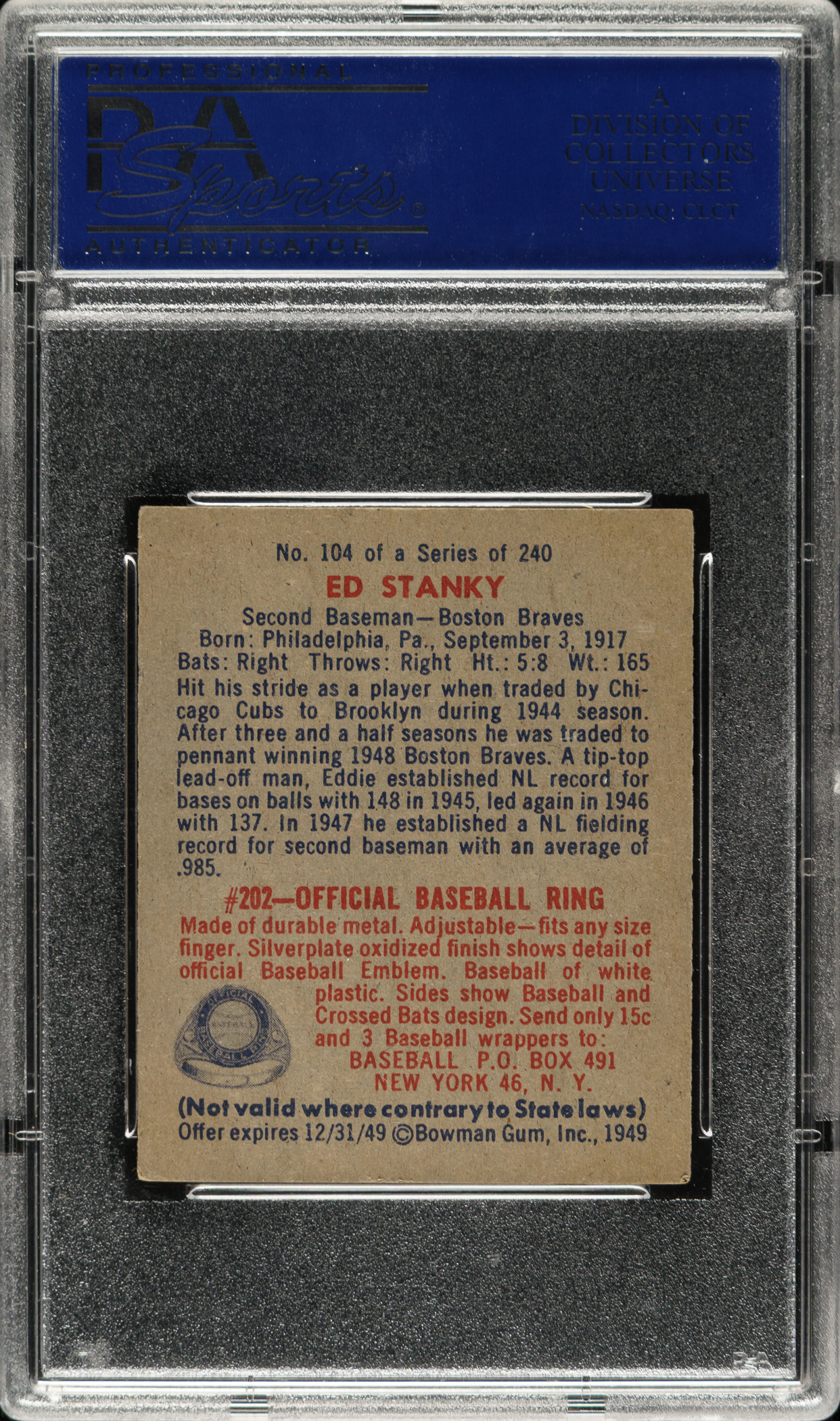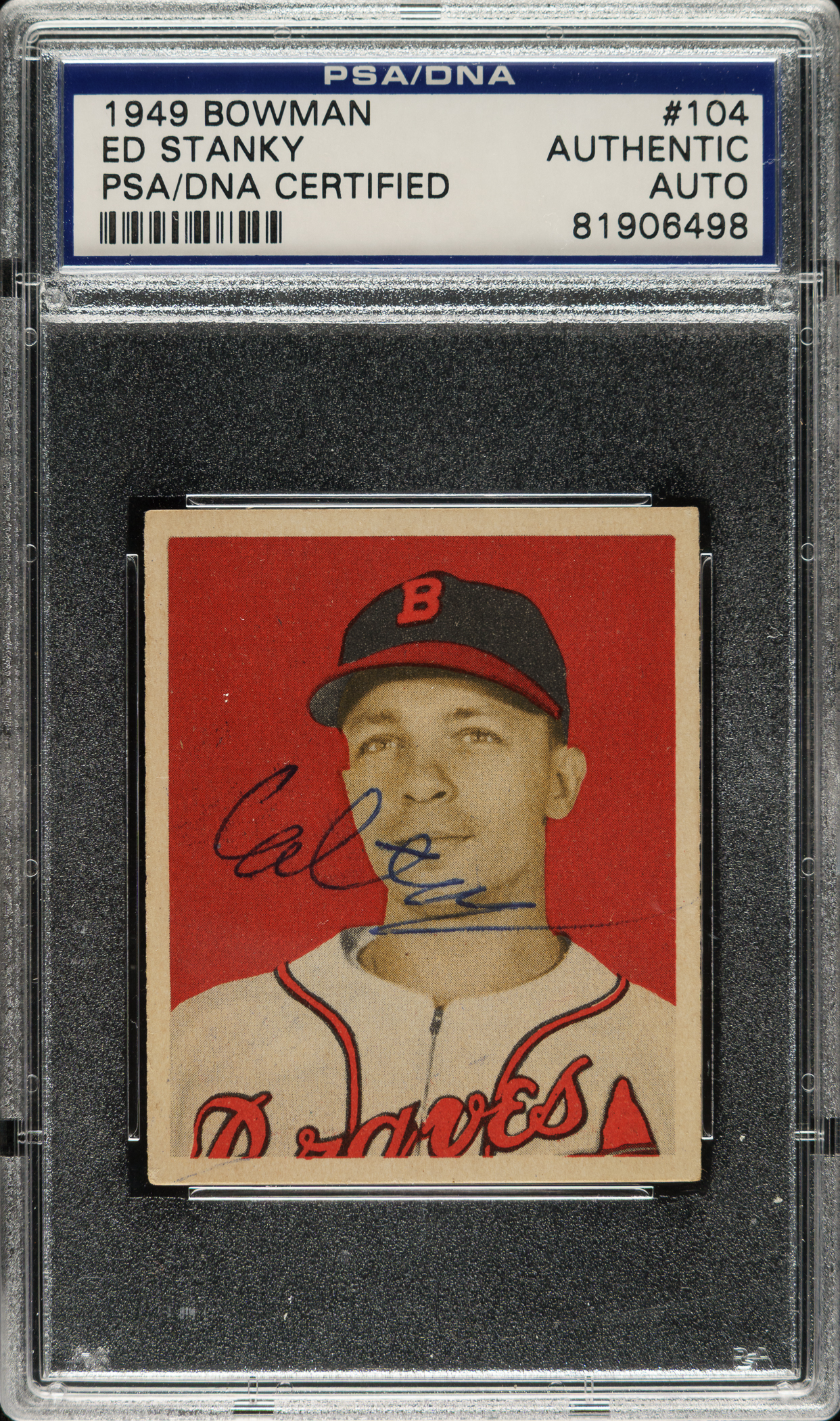 Lot # 2329: Signed 1949 Bowman #104 Ed Stanky - PSA/DNA