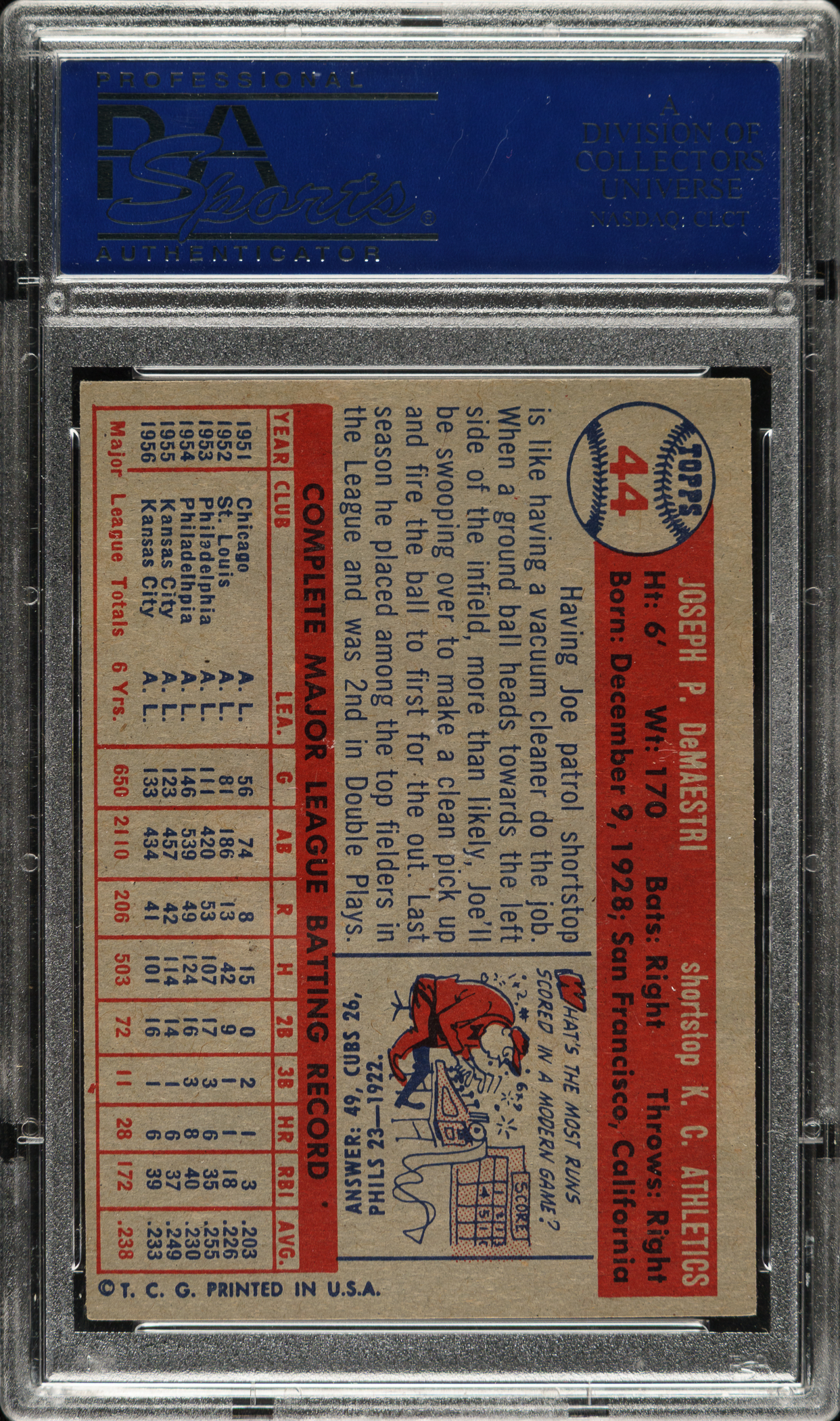 PSA/DNA has encapsulated the card, grading the signature Authentic. Kansas City Athletics.