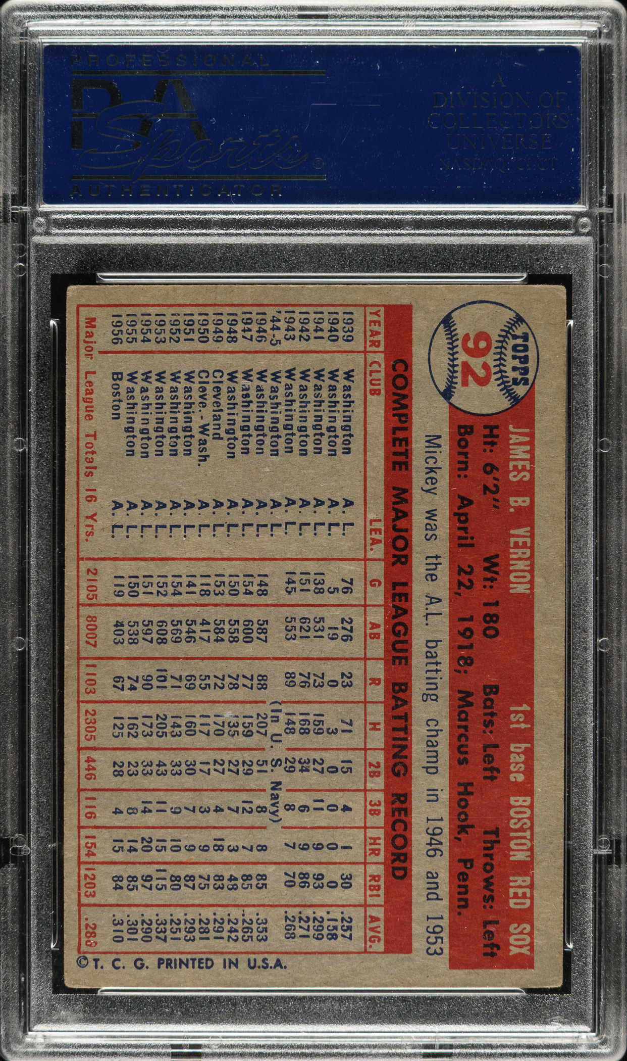 Lot # 2374: Signed 1957 Topps #92 Mickey Vernon - PSA/DNA