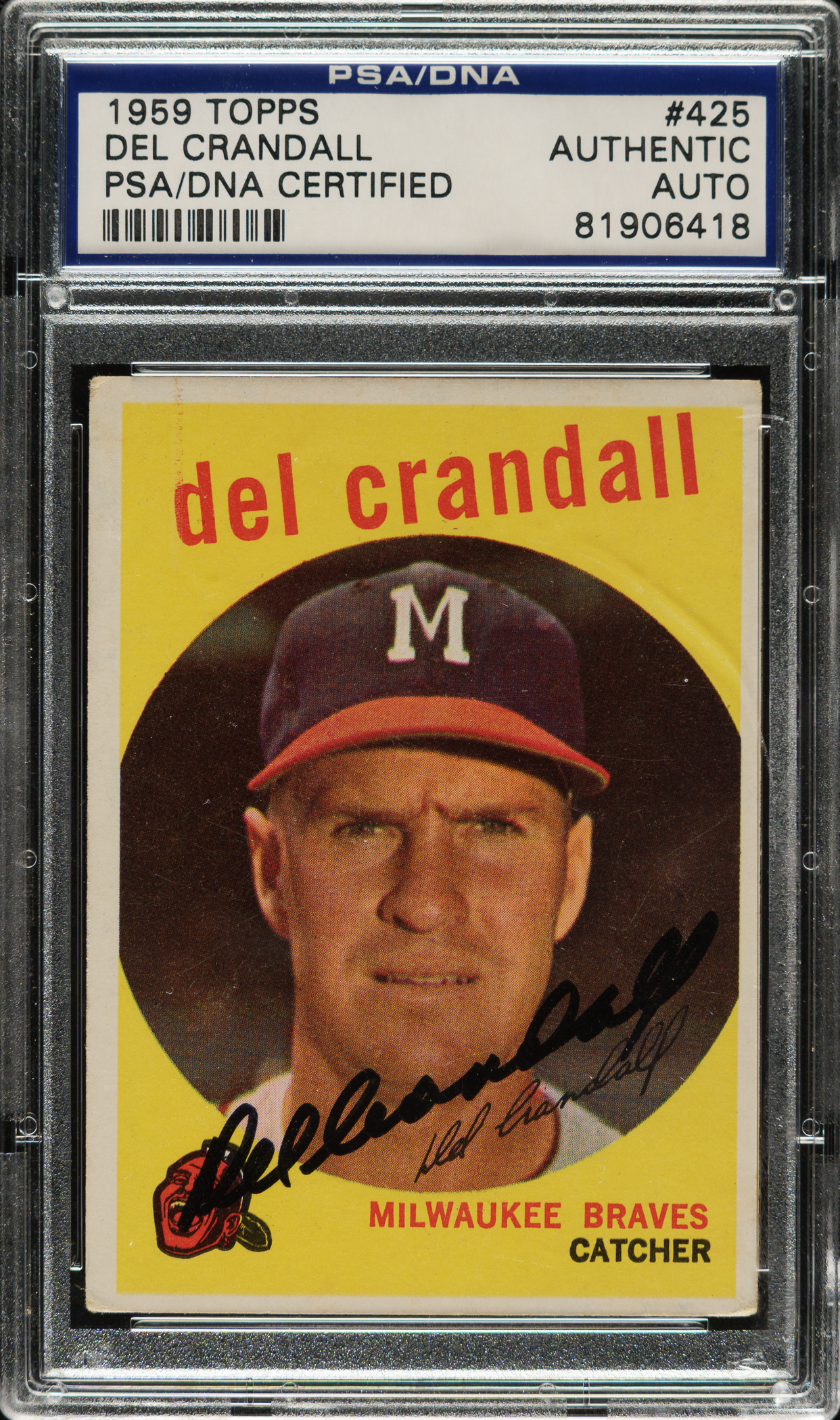 PSA/DNA has encapsulated the card, grading the signature Authentic. Milwaukee Braves.