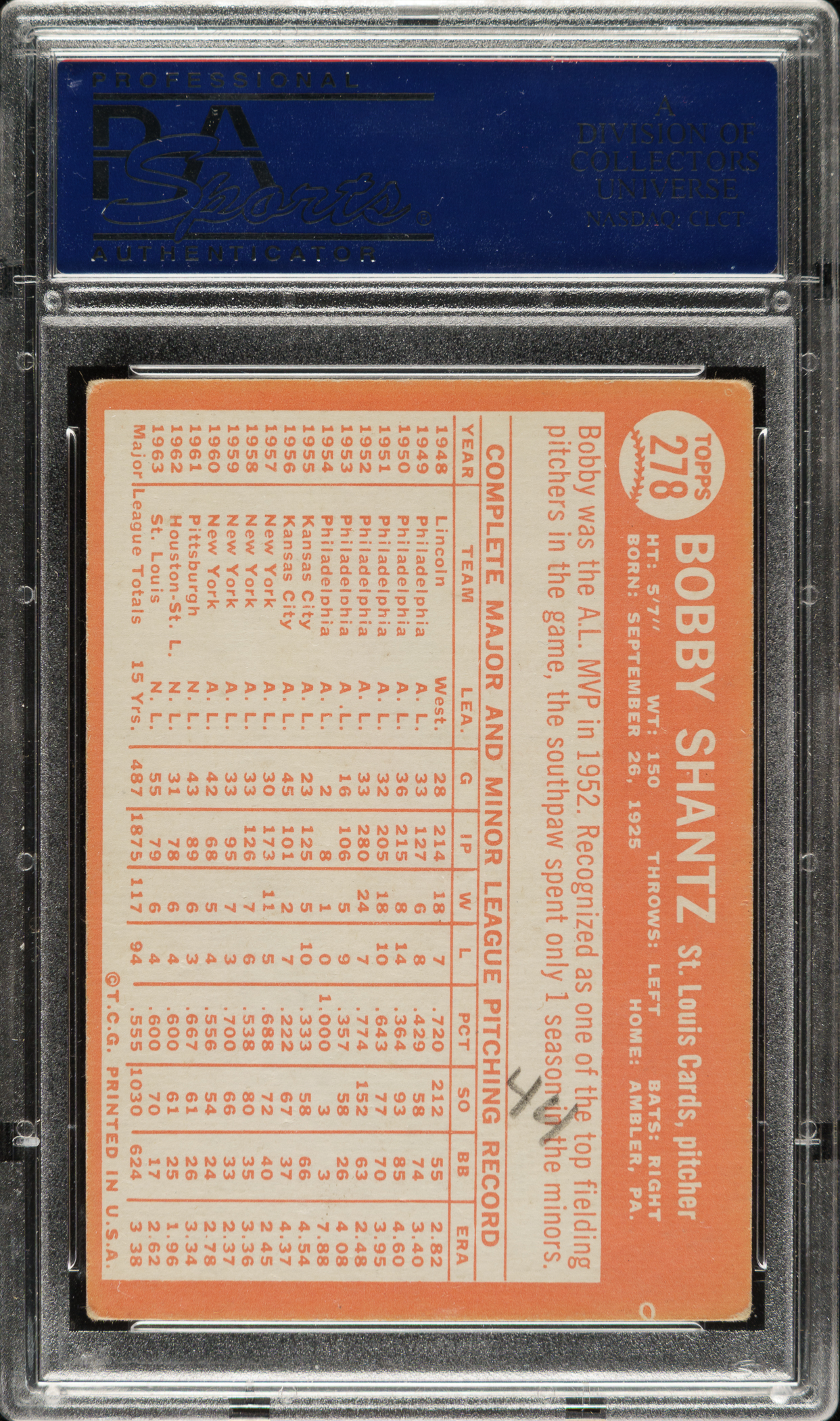 PSA/DNA has encapsulated the card, grading the signature Authentic. St. Louis Cardinals.